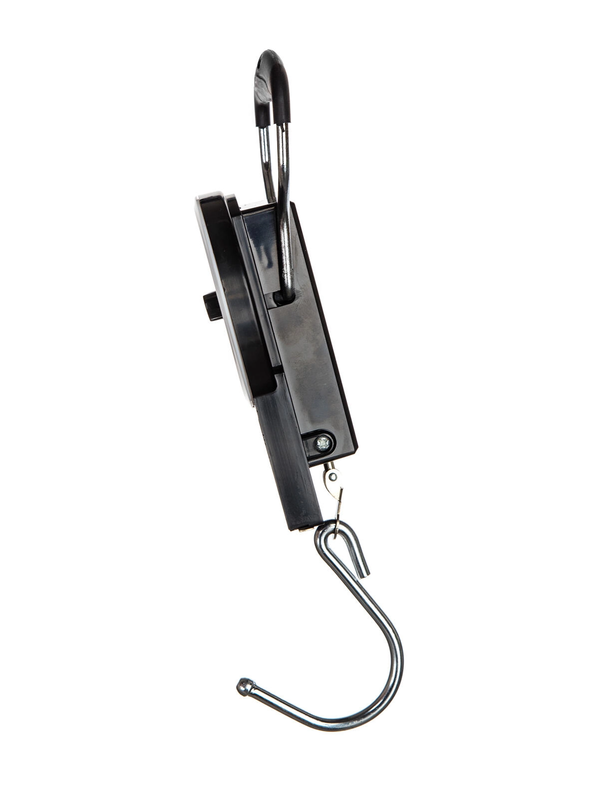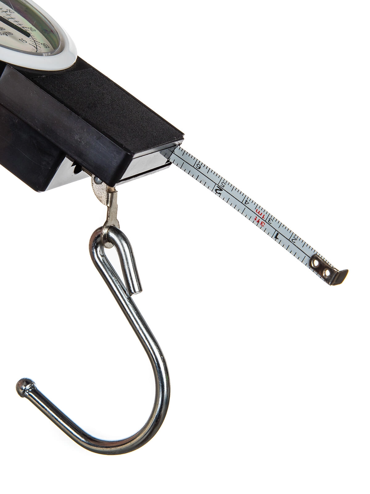 Sestavni del je vgrajen merilni trak (do 100 cm), ki ga uporabite za merjenje dimenzij ročne in oddane prtljage. Močna kovinska kljuka in vzdržljivo ohišje zagotavljata varno obešanje in dolgo življenjsko dobo, medtem ko ergonomski ročaj olajša udobno dvigovanje tudi težjih torb.