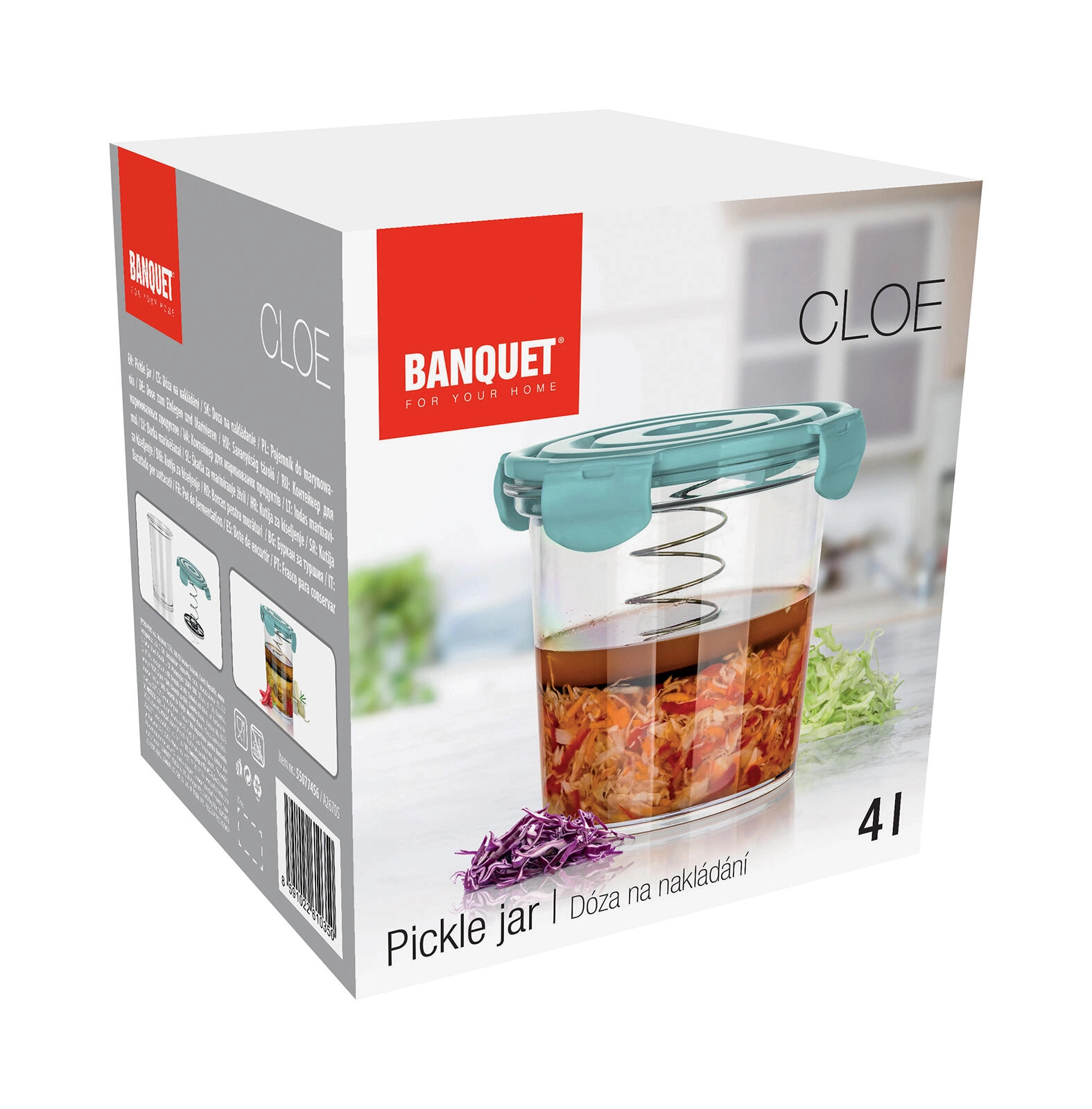 Ta prostorna posoda CLOE s prostornino 4 litre je zasnovana za udobno vlaganje zelenjave in mariniranje mesa. Zahvaljujoč vzmetnemu mehanizmu v pokrovu ostanejo sestavine zanesljivo potopljene pod gladino slanice ali marinade, s čimer se zmanjša dostop zraka in spodbuja enakomeren postopek vlaganja.