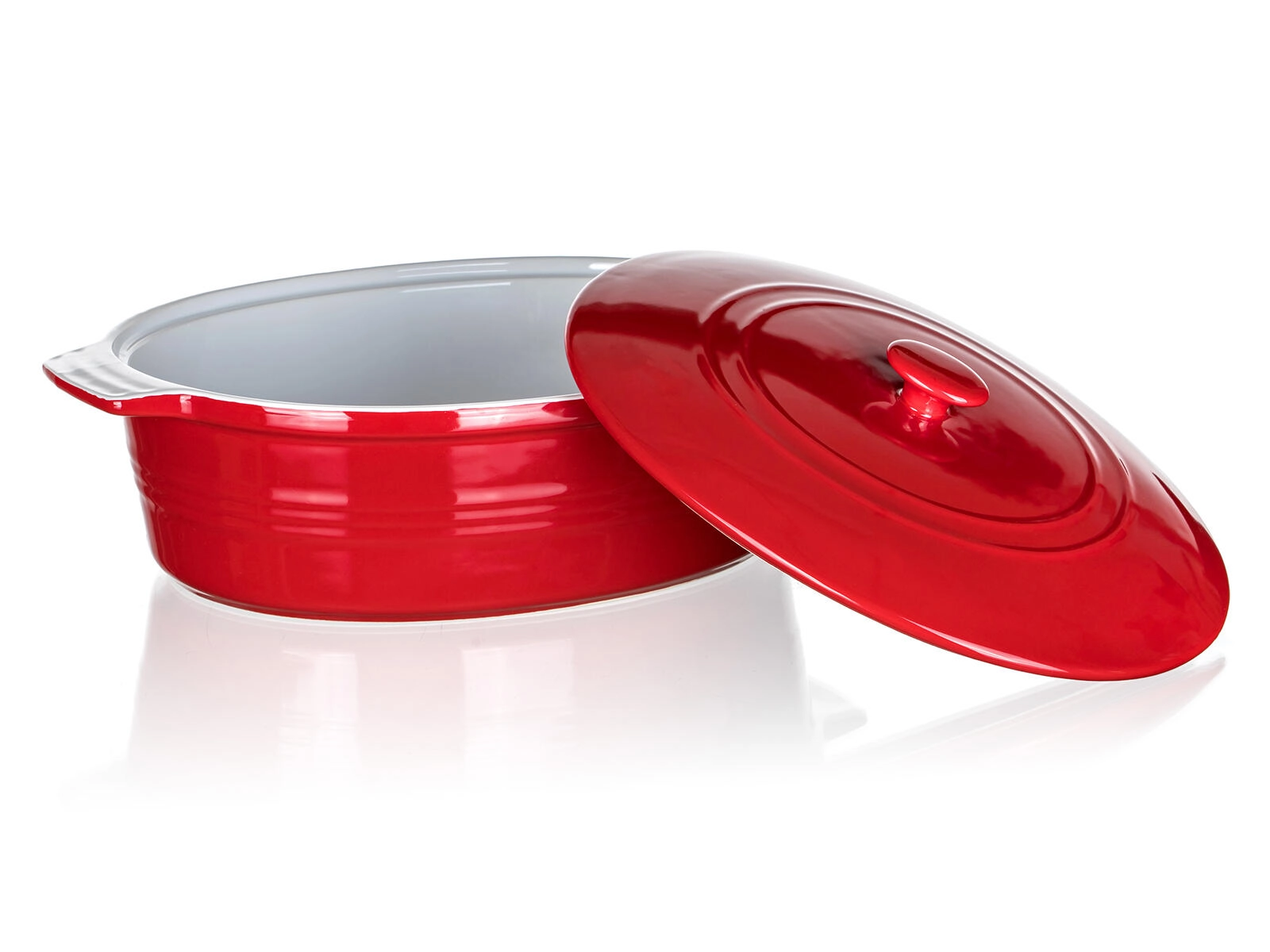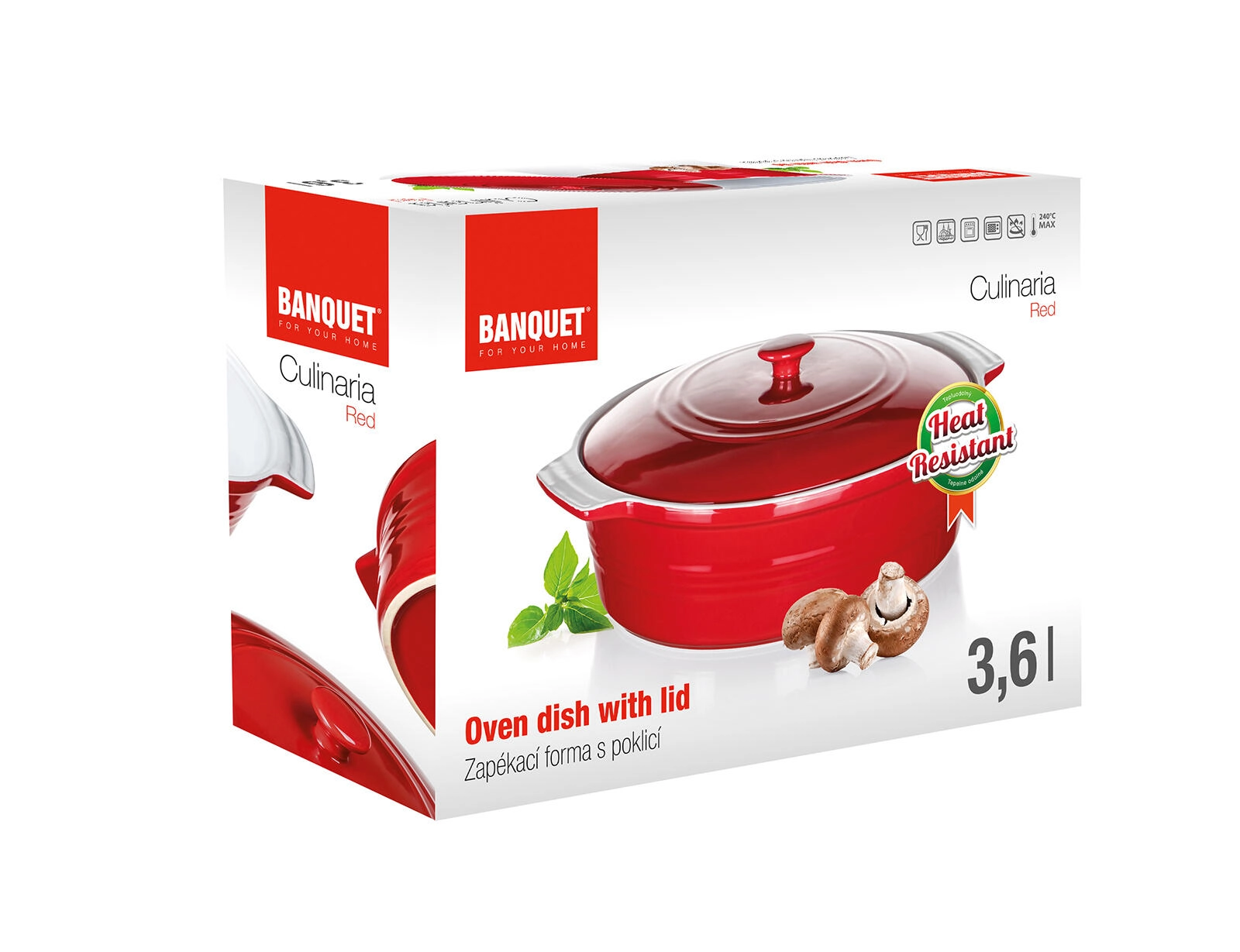 Praktičen pokrov pomaga ohranjati vlago in aromo znotraj, medtem ko integrirana ročaja zagotavljata zanesljiv oprijem pri prenašanju iz pečice na mizo. Elegantna rdeča zunanjost spremeni vsako serviranje v stilski dogodek.