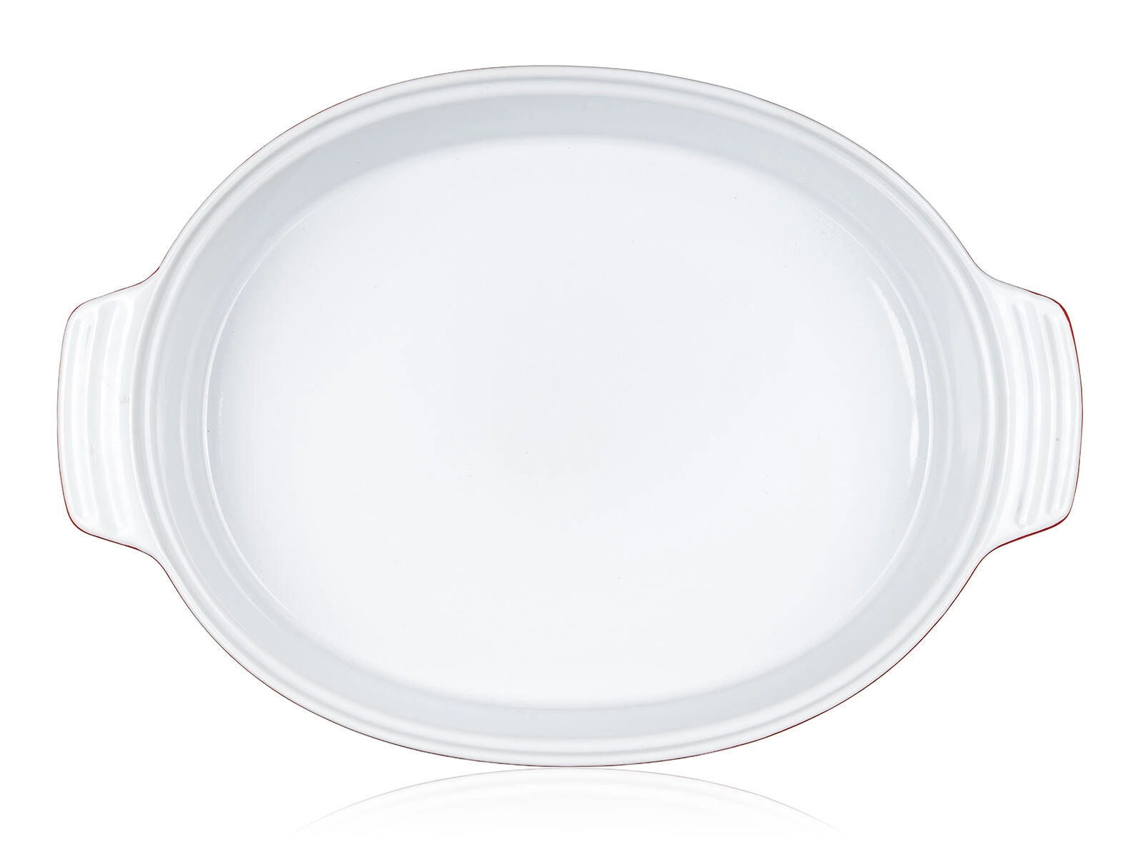 Integrirana ročaja olajšata rokovanje. Gladka bela glazura v notranjosti zmanjšuje prijemanje hrane in poenostavi vzdrževanje.