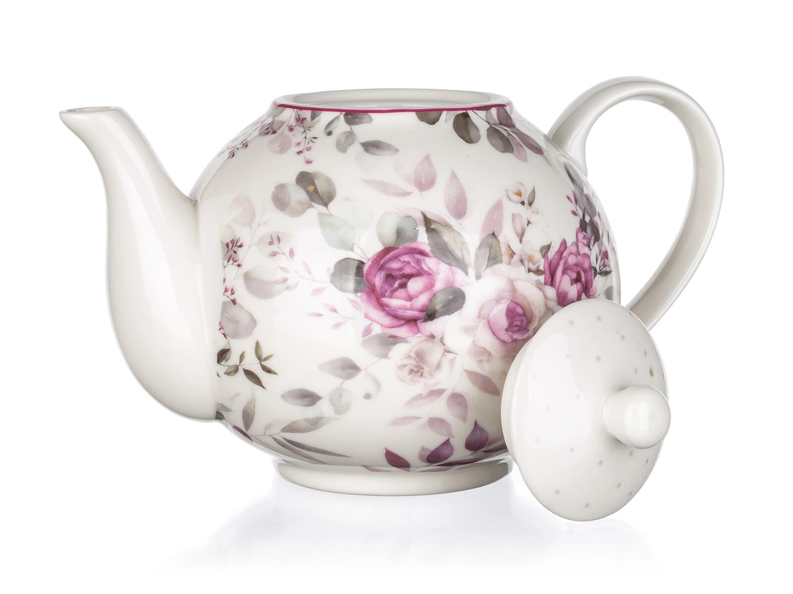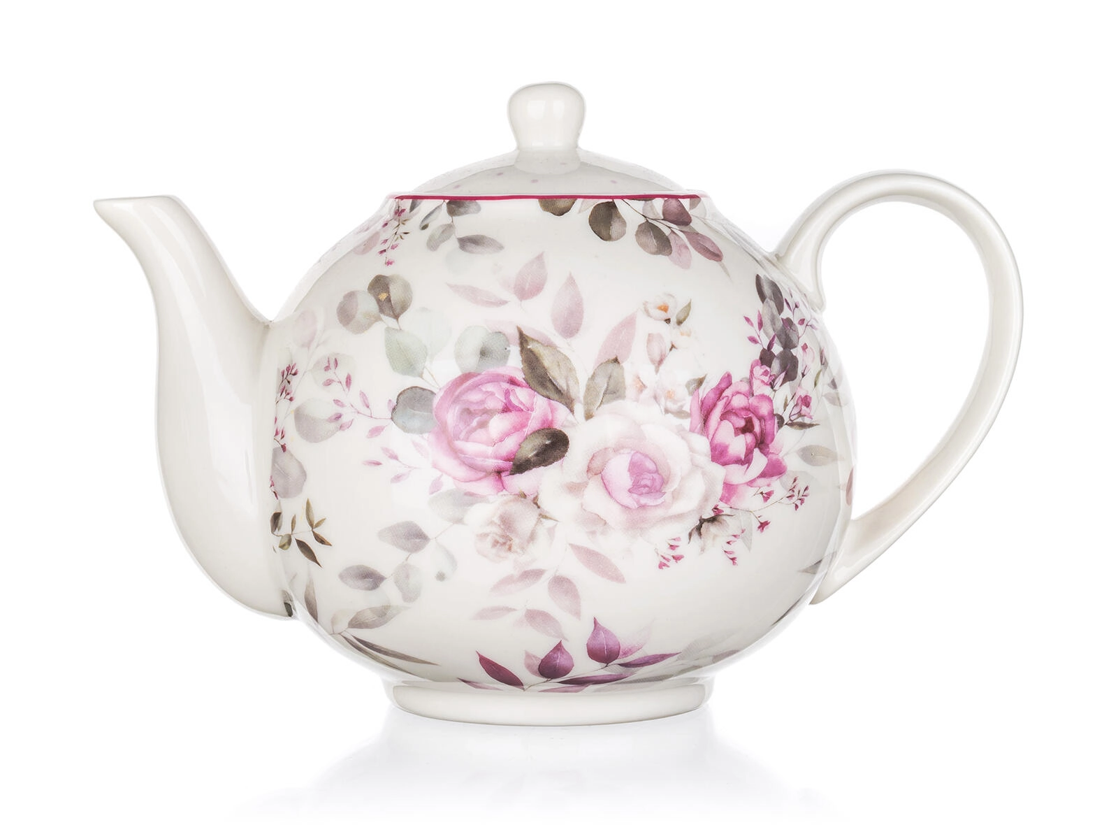 Nežen motiv vrtnic v rožnatih in vijoličnih tonih ustvari iz čajnika eleganten dodatek vsaki mizi in se odlično ujema z drugimi kosi iz kolekcije.