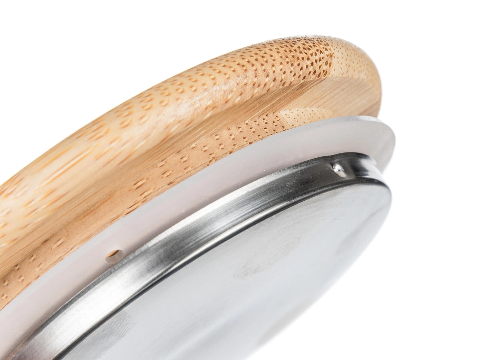 Bambusov pokrov z inox prevleko in silikonskim tesnilom je odporen na vlago in vonjave ter pomaga ohranjati aromo napitka v notranjosti čajnika.