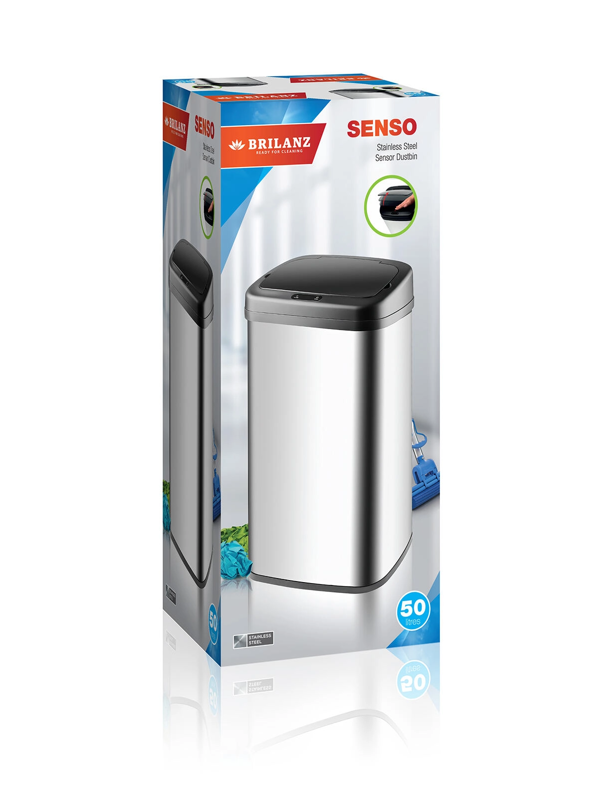 Moderni brezstični koš za odpadke SENZO s prostornino 50 litrov je idealna izbira za kuhinjo, pisarno in dom. Ohišje iz nerjavnega jekla s črnim plastičnim pokrovom deluje elegantno, je odporno in enostavno za vzdrževanje. Senzor na pokrovu zagotavlja popolnoma higiensko upravljanje brez dotika – pokrov se sam odpre in po odlaganju odpadkov znova zapre.