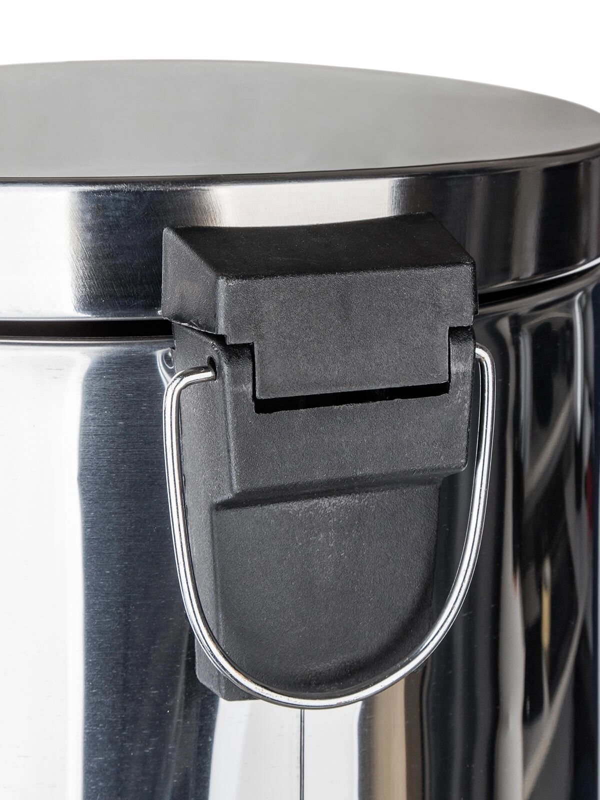 Notranja odstranljiva plastična posoda z ročajem omogoča hitro praznjenje odpadkov in enostavno čiščenje. Tesno prilegajoč pokrov pomaga zmanjšati uhajanje vonjav, gumijast obroč na dnu povečuje stabilnost in ščiti tla pred praskami.