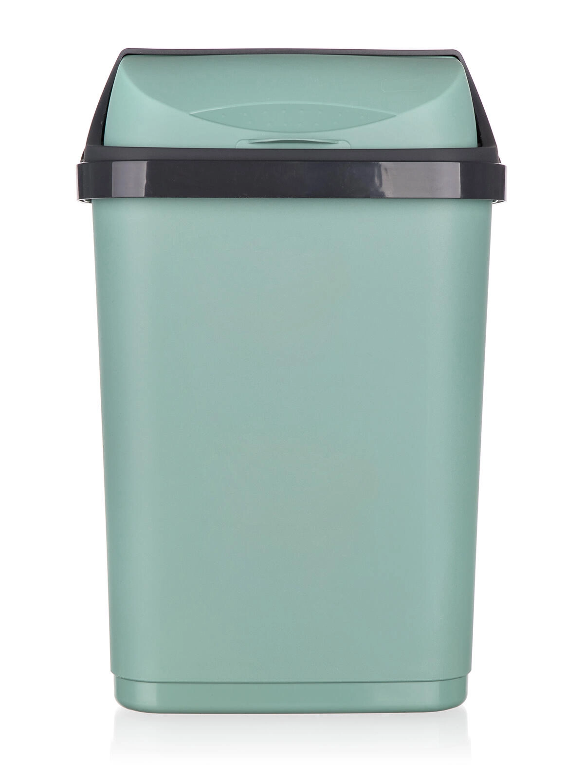 Kompakten koš za odpadke s prostornino 10 l s swing (nihajnim) pokrovom je idealen za kuhinjo, kopalnico in pisarno. Zaradi ozke pravokotne oblike prihrani prostor, ima enostavno pralno plastično površino in praktičen nihajni pokrov za higiensko odlaganje brez dotika. Del pakiranja so nalepke za ločevanje odpadkov.
