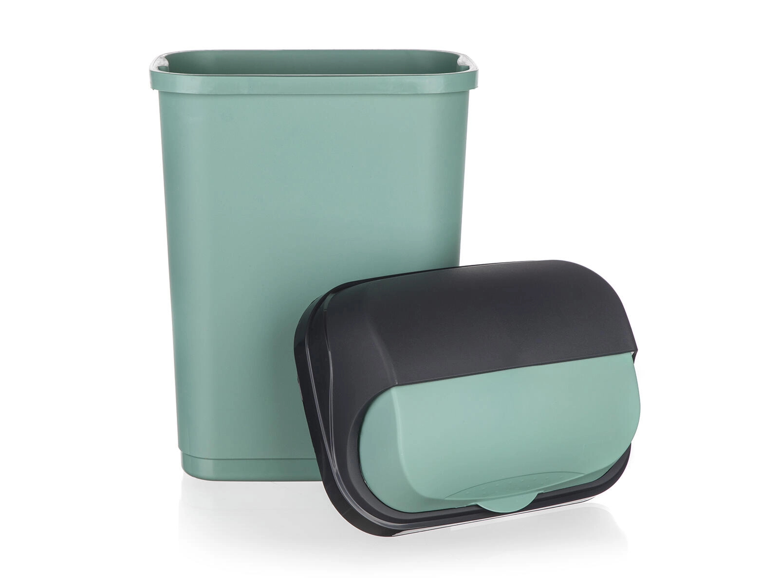 Z priloženimi nalepkami (steklo, papir, bio, plastika + kovina) lahko koš preprosto označite in podprete sistematično ločevanje odpadkov v gospodinjstvu in pisarni. Trpežna plastika je enostavna za vzdrževanje, zelena barva pa se lepo poda sodobnim interierjem.