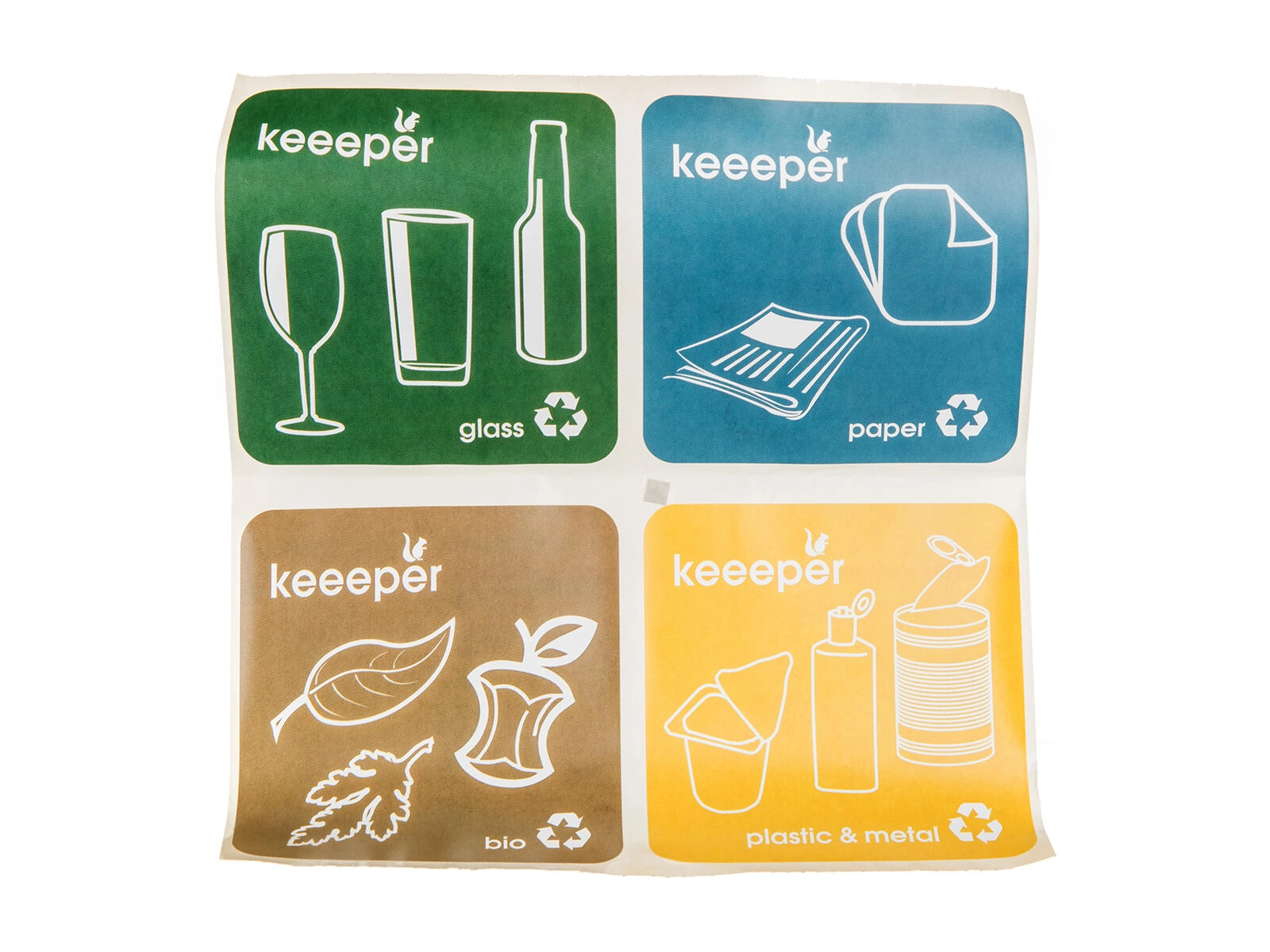 - Nalepke za ločevanje odpadkov (steklo, papir, bio, plastika + kovina)