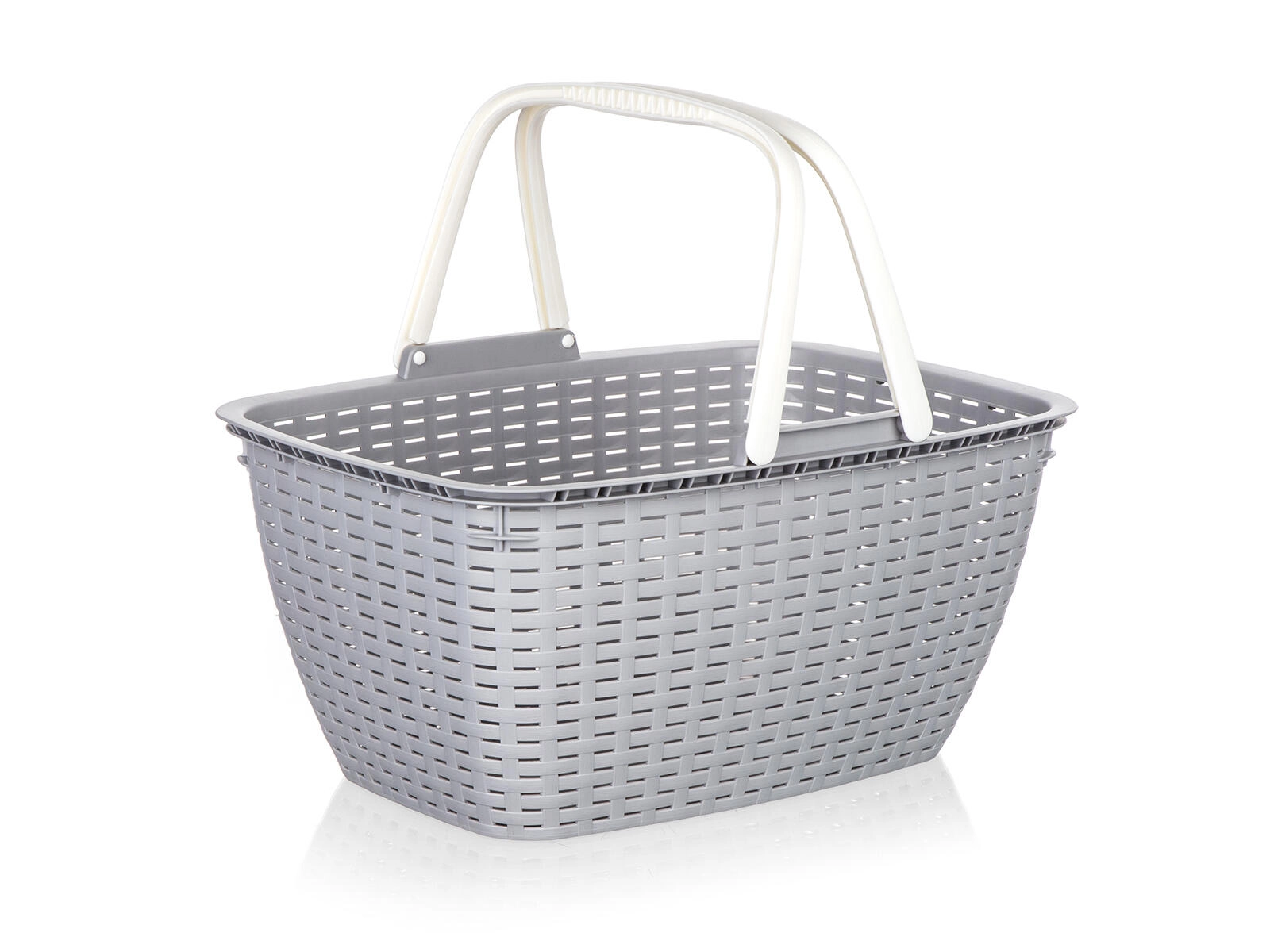 Košara ima ergonomske zložljive ročaje za varen oprijem ter stabilno ravno dno za zanesljivo odlaganje. Izdelana je iz trpežne plastike, ki se preprosto čisti, in je dobavljiva v privlačni mešanici barv, zato se lepo poda v vsak dom, pisarno ali avto.