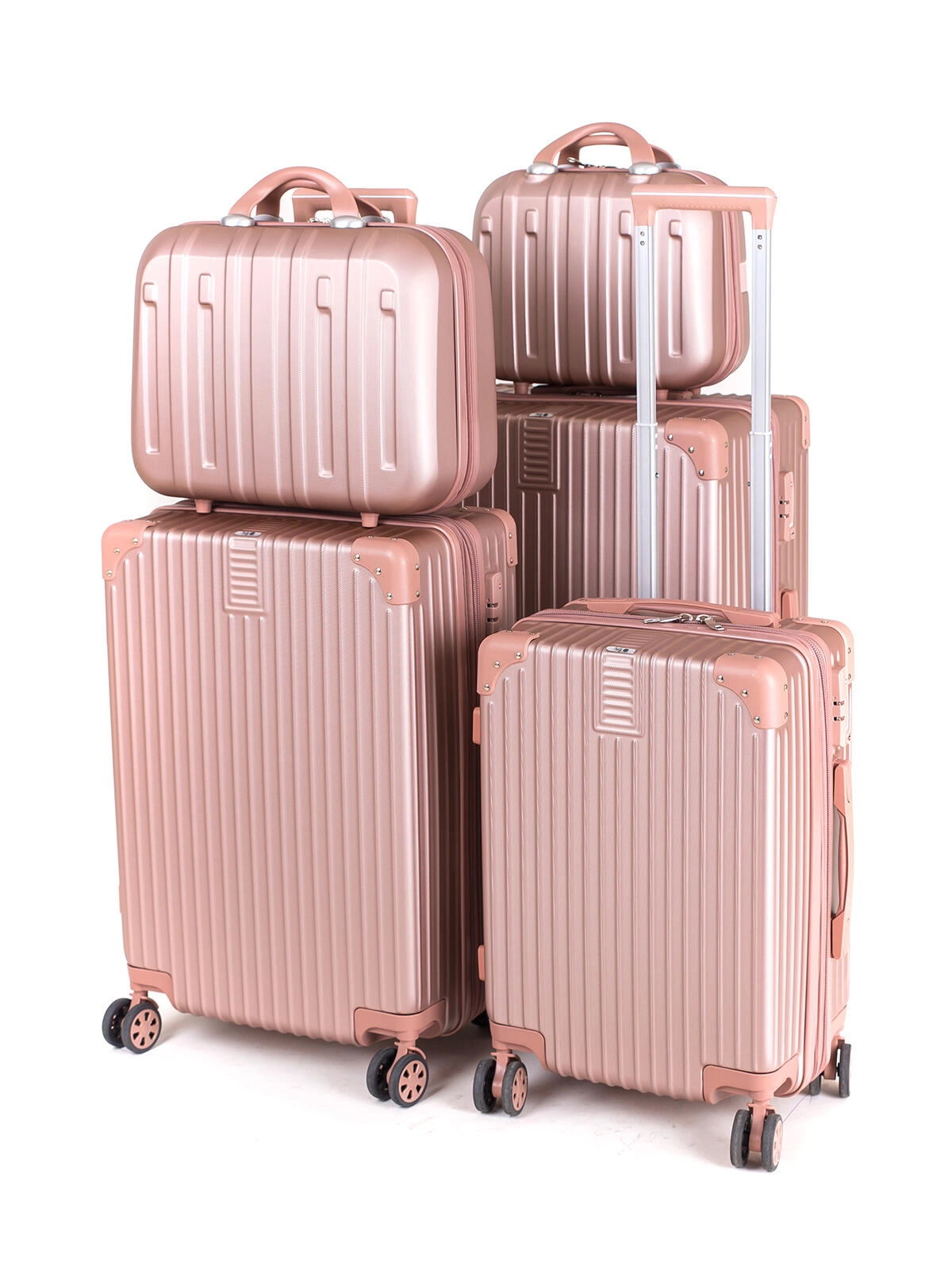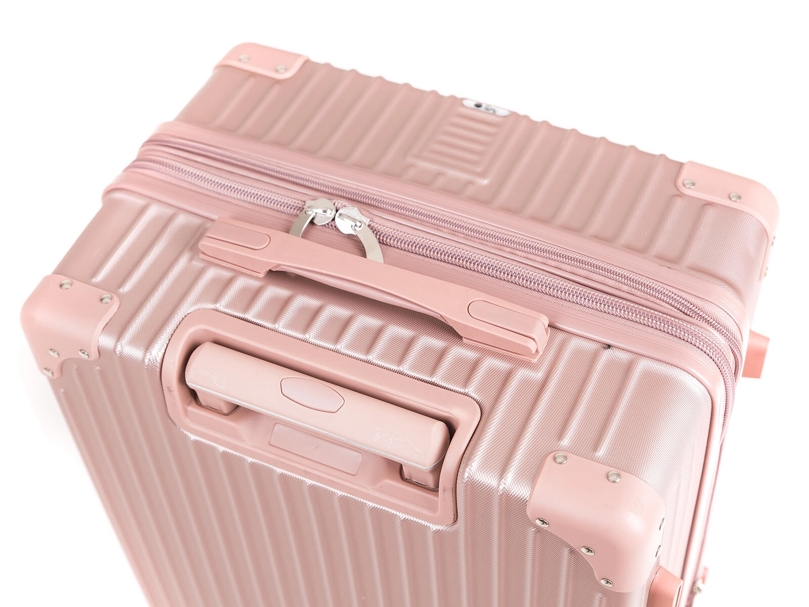 Stilski zlato-rožnati trdi kovček je izdelan iz trpežne plastike ABS, ki odlično prenese udarce in na poti ščiti vsebino. Zahvaljujoč štirim dvojnim kolescem, vrtljivim za 360°, je manevriranje tekoče tudi v živahnem okolju letališč in postaj. Teleskopski ročaj z zaskočko in več nastavitvami višine se prilagodi vaši postavi za udobno vodenje kovčka.