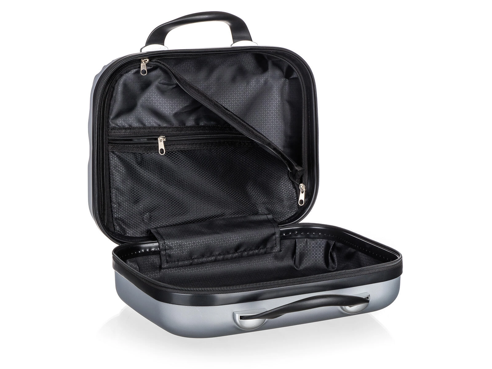 Kompaktna potovalna torbica iz trpežne plastike ABS s prostornino 15 l je idealna za kozmetiko, toaletne potrebščine in manjše dodatke. Ponuja čvrsto školjko, odporno na udarce, udobni dve ročaji, zadrgo in pametno notranjo razporeditev za pregledno organizacijo na poti.