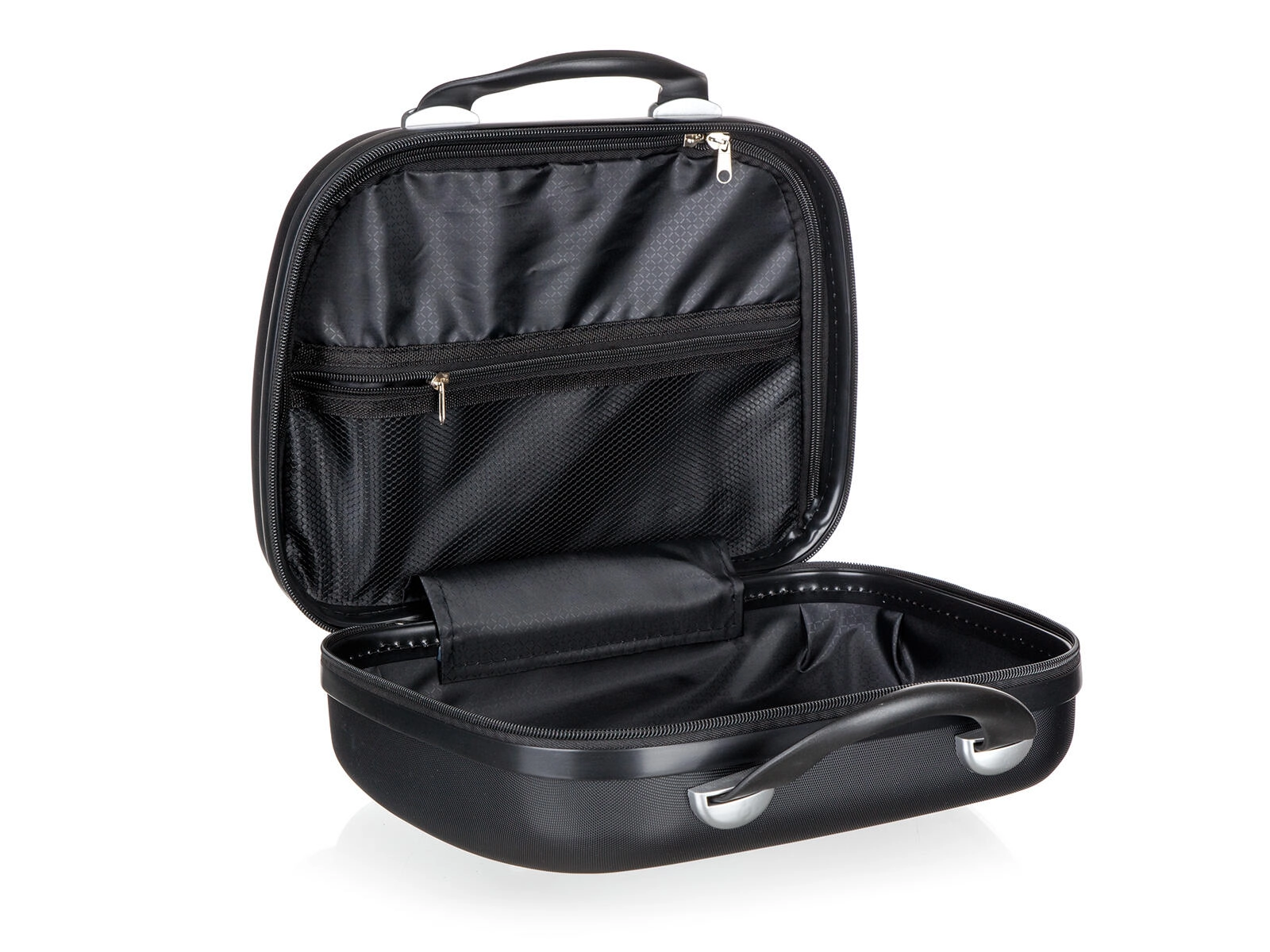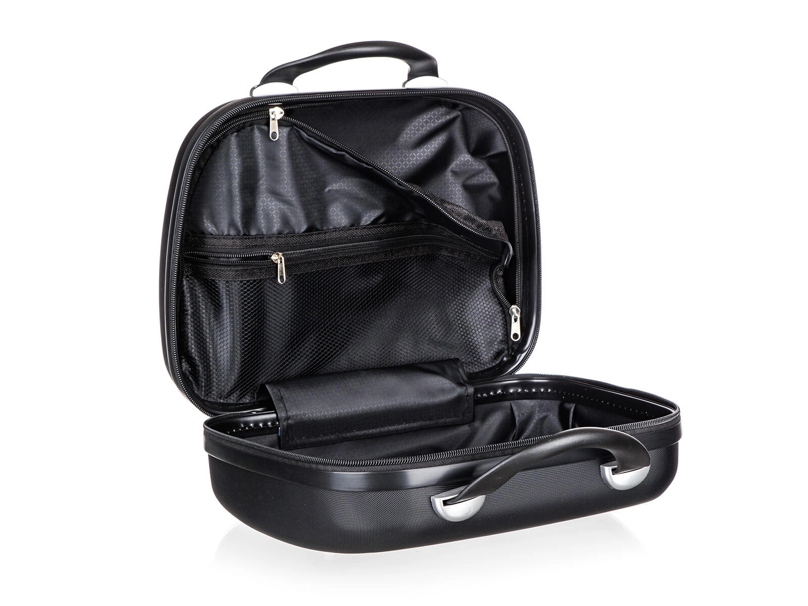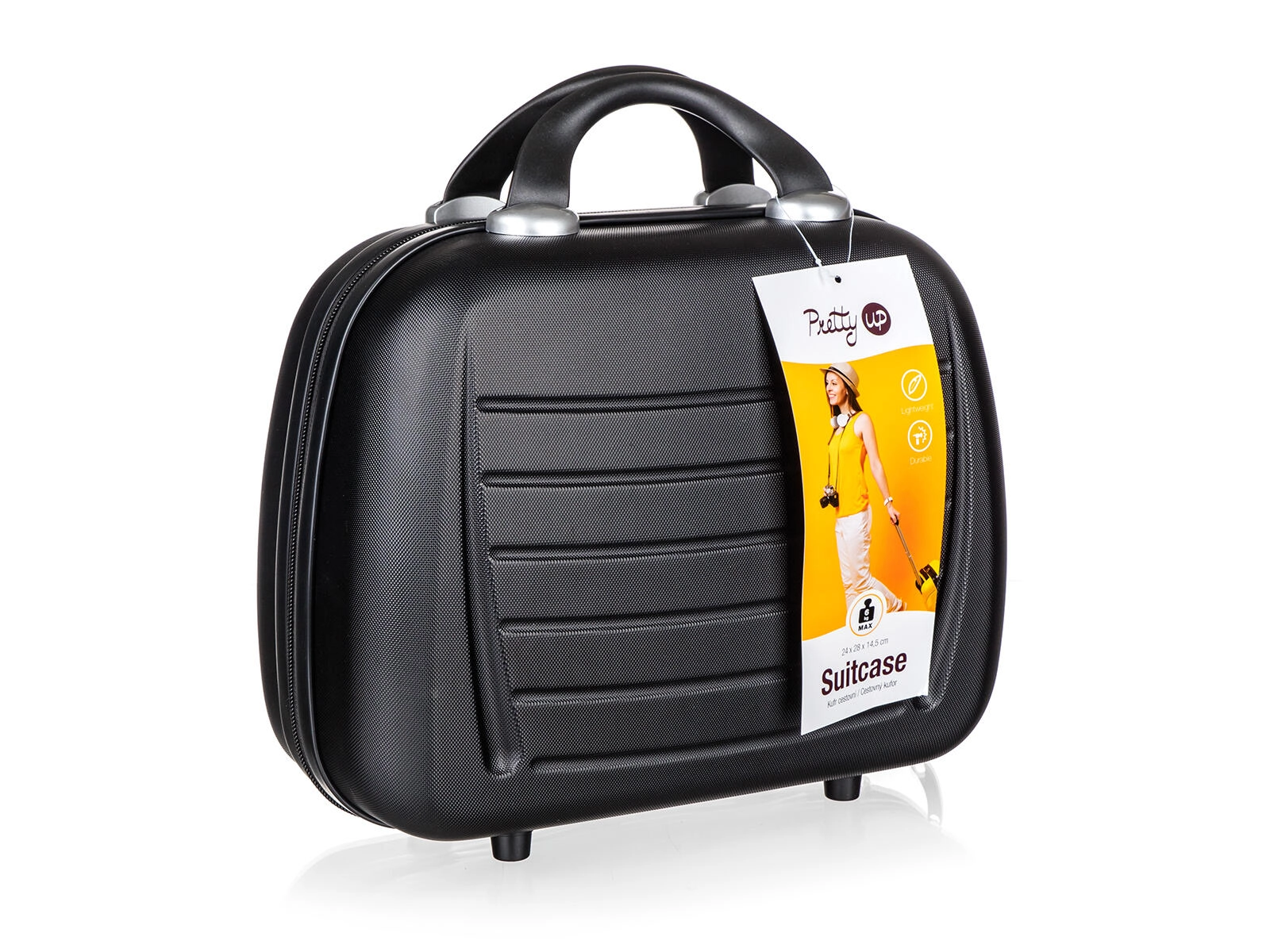 Praktičen trdi kovček v velikosti približno 15" je idealen kot dodatek k ročni prtljagi. Čvrsta konstrukcija iz udarno odpornega ABS zanesljivo zaščiti kozmetiko, elektroniko in potovalne dodatke. Zahvaljujoč kompaktnim meram 24 × 28 × 14,5 cm se enostavno prenaša in brez težav prilega v avto ali na kovček s teleskopskim ročajem.