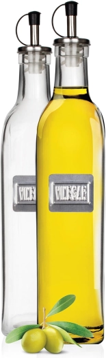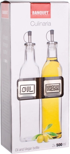 Praktičen komplet dveh stekleničk s prostornino 500 ml za shranjevanje in serviranje olja in kisa. Zahvaljujoč vgrajenemu nalivniku, plastičnemu pokrovčku z tesnilom in kvadratnemu dizajnu je doziranje enostavno, zapiranje odlično tesni in v vsaki kuhinji izgleda elegantno.