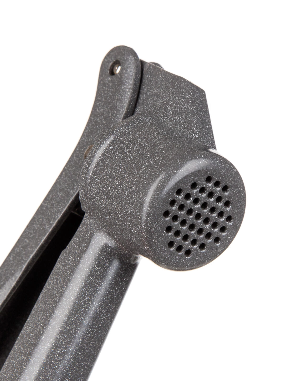 Praktičen tlačilec za česen iz odporne aluminijeve zlitine v elegantni sivi barvi za hitro in učinkovito drobljenje česna brez napora. Ergonomska ročaja zagotavljata udoben oprijem, enostavno čistljiva mrežica pa prihrani čas pri vzdrževanju.