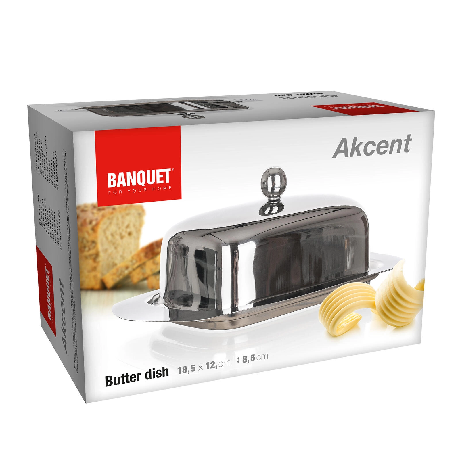 Nerjaveča maslenica AKCENT je praktičen pomočnik za shranjevanje in serviranje masla. Minimalističen videz se poda tako v moderne kot klasične kuhinje, gladka površina pa omogoča enostavno čiščenje. Idealna za zajtrke in pogostitve z gosti.