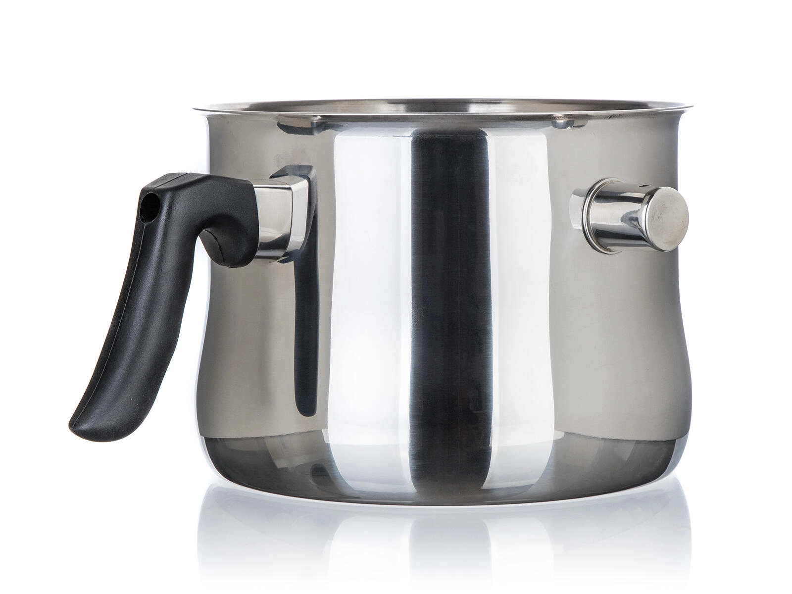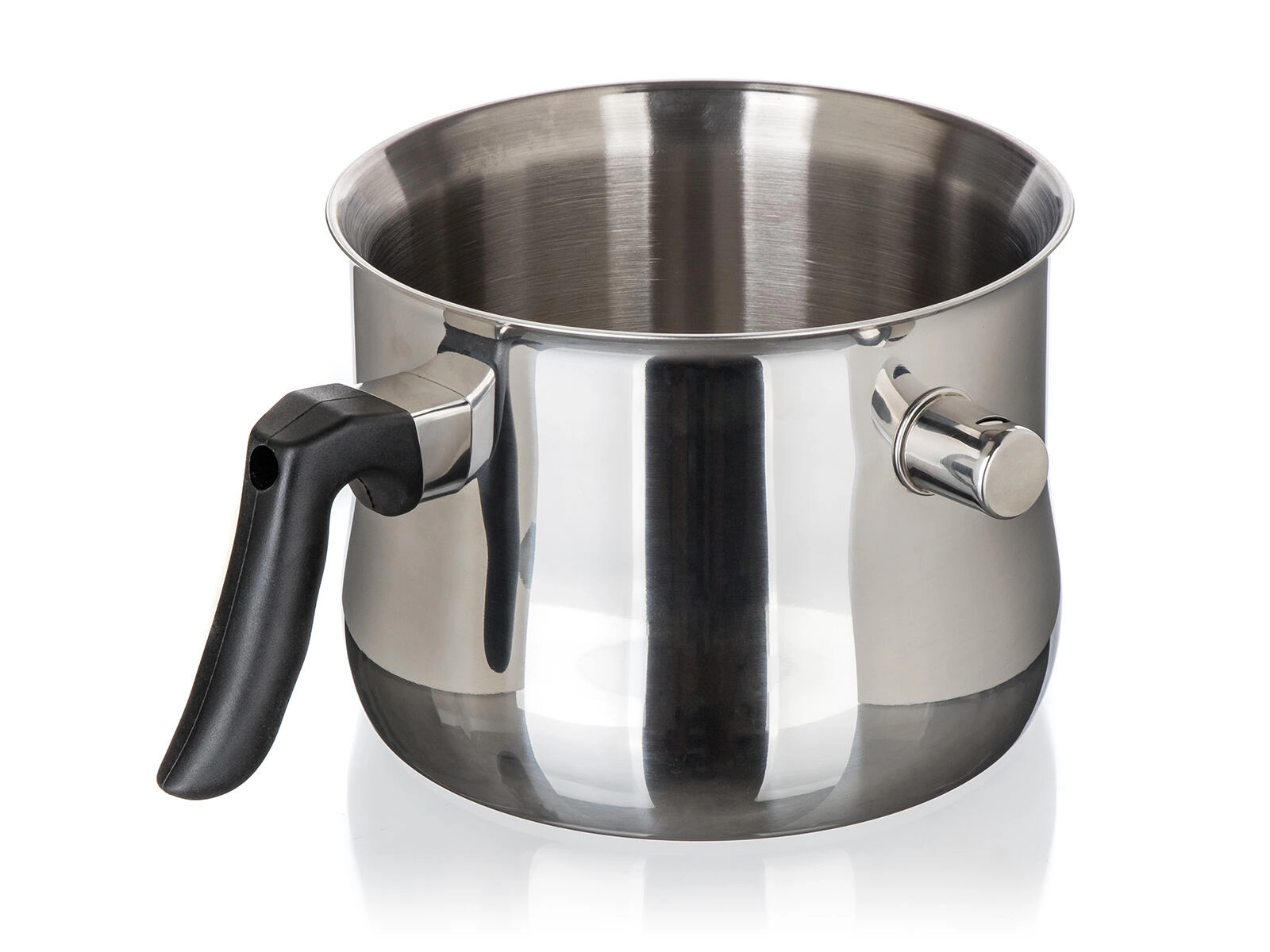 Zahvaljujoč kakovostnemu nerjavnemu jeklu je posoda trpežna, enostavna za čiščenje in ohranja dolgo življenjsko dobo. Mlečnik je odličen za vsakodnevno pripravo mleka, pudinga, zdrobove ali druge kaše, omak ali za taljenje čokolade brez tveganja prismoda.
