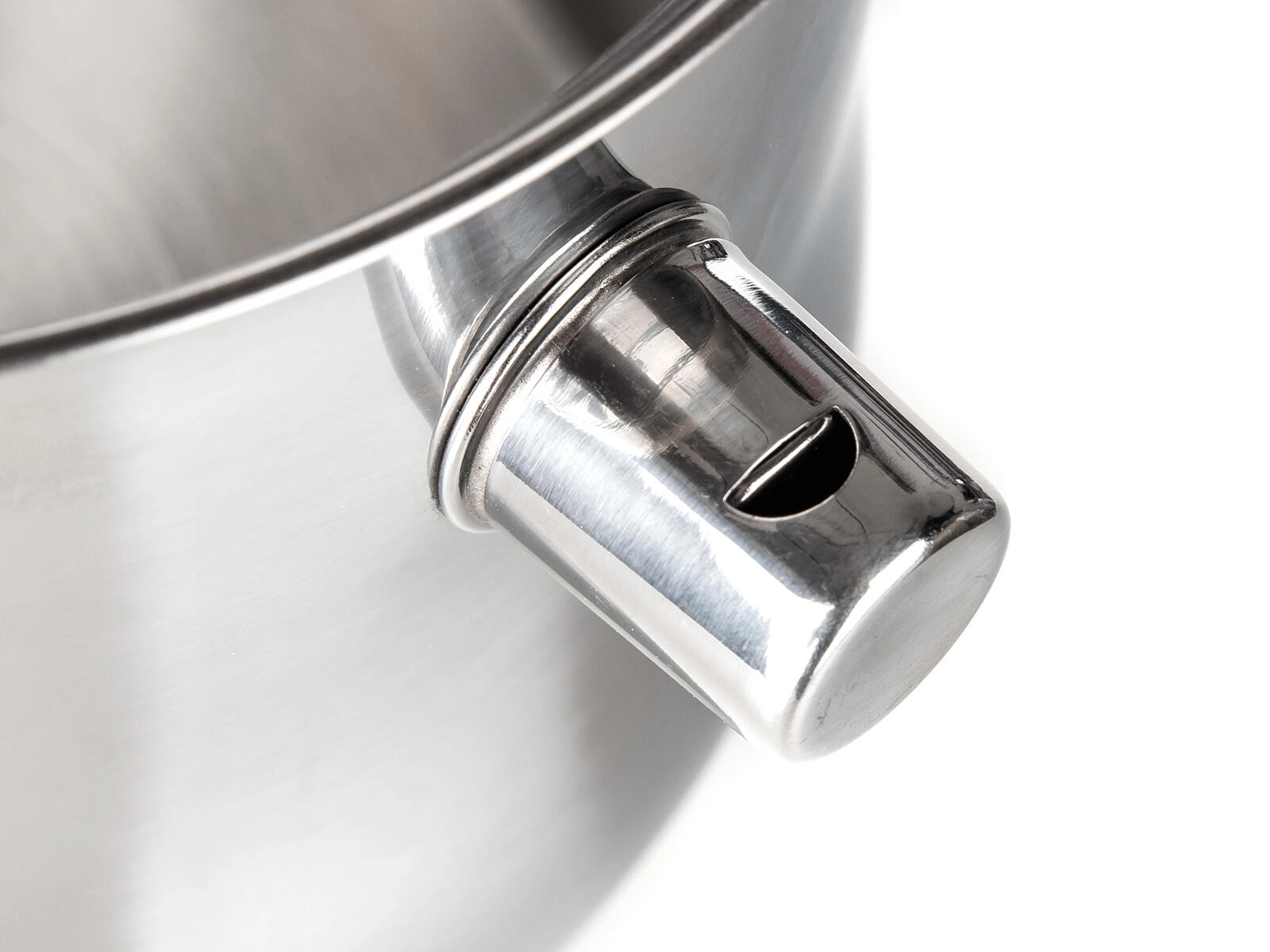 Takoj ko voda v dvojni steni doseže vrelišče, vas piščalka opozori – imate nadzor nad postopkom brez stalnega nadzora.