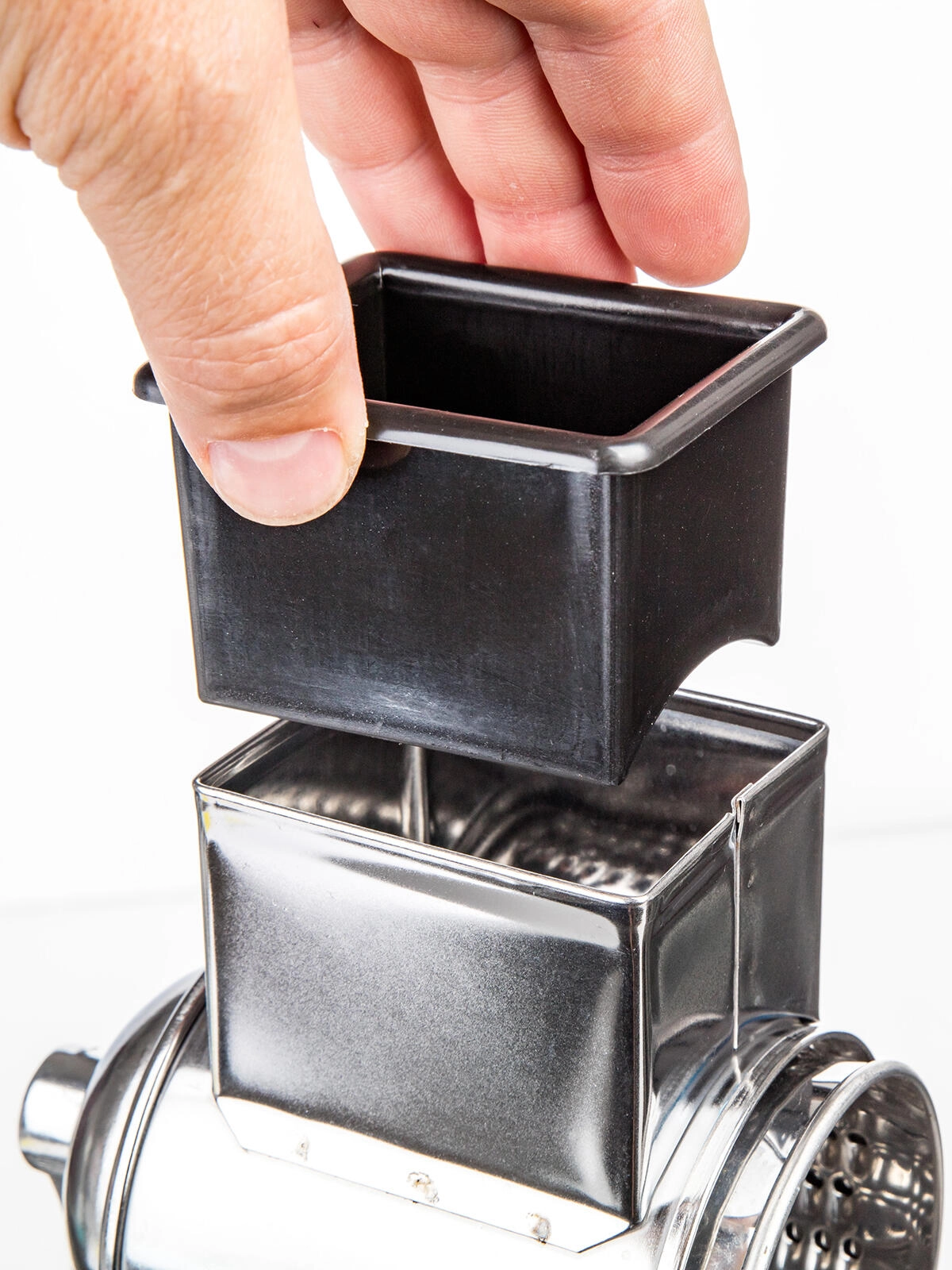 Kakovosten boben iz nerjavnega jekla zagotavlja učinkovito drobljenje drobtin, orehov in trdih sirov z dolgo življenjsko dobo.