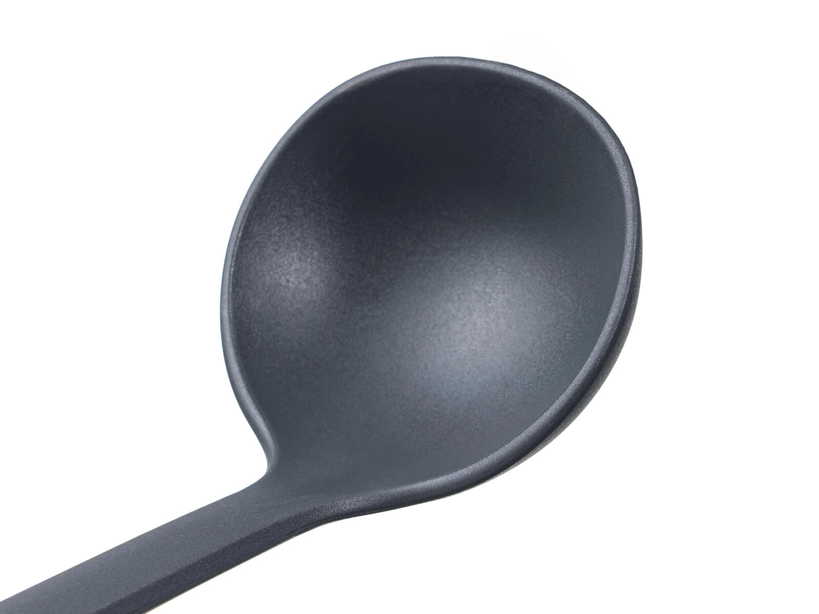 Zajemalka CULINARIA Grey združuje trpežnost in lahkost najlona PA66 s premišljeno ergonomijo za udobno postrežbo juh, omak in juhnih osnov. Zaradi gladke površine je varna za teflonske in keramične prevleke ter ne pušča prask.