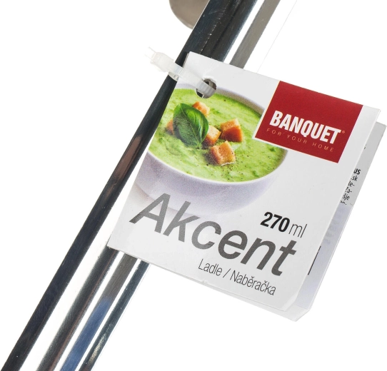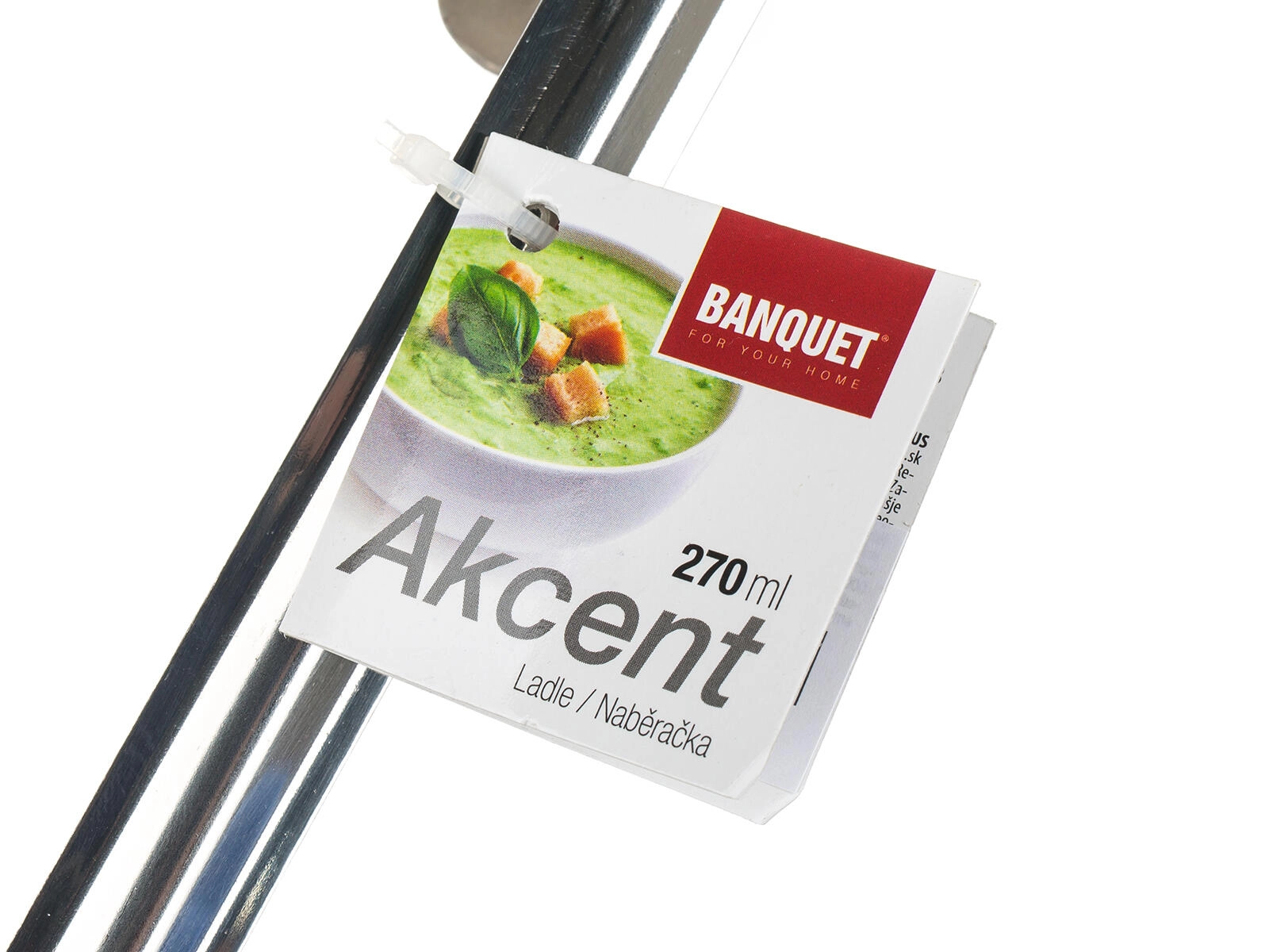 Ta robustna zajemača AKCENT iz nerjavnega jekla olajša vsakodnevno serviranje tekočih jedi. Zahvaljujoč globoki posodi s prostornino 270 ml boste naenkrat preprosto zajeli dovolj juhe, jušne osnove ali omake.