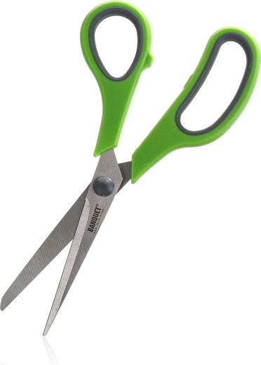 Univerzalne gospodinjske škarje CULINARIA dolžine 19,5 cm z nerjavnimi rezili in udobnim, nedrsečim držalom za zanesljiv oprijem. Primerne za rezanje papirja, niti, tkanin in drugih lažjih materialov. Ponuja natančen rez, dolgo življenjsko dobo in udobje pri vsakodnevni uporabi.