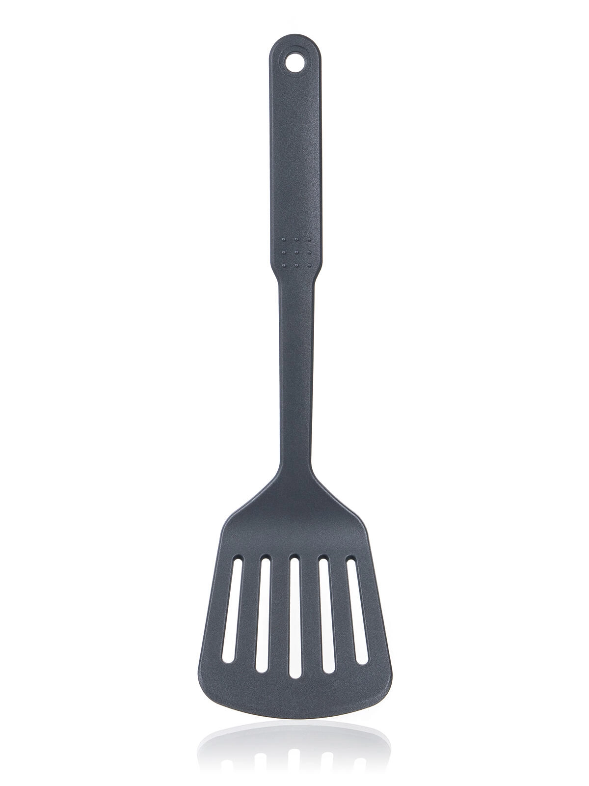 Lopatica CULINARIA Grey dolžine 32 cm je zanesljiv pripomoček za vsakodnevno kuhanje. Lahka, a čvrsta konstrukcija iz najlona PA66 ščiti površine ponev in loncev ter ne opraska teflona ali keramike. Široka, perforirana glava olajša obračanje burgerjev, palačink ali rib, hkrati pa odvaja odvečno olje in tekočine.