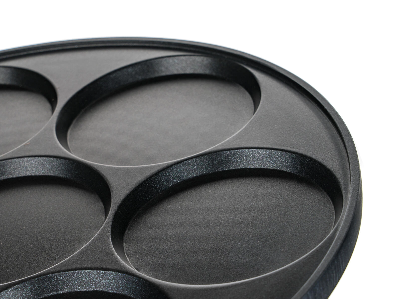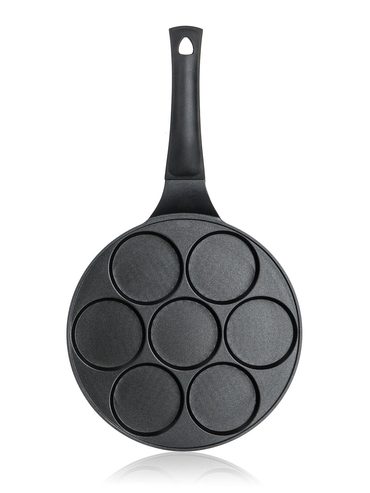 Sedem okroglih modelčkov s premerom 8 cm zagotavlja enotno velikost palačink, jajc in krompirjevih polpetov ter pohitri pripravo zajtrka za vso družino.
