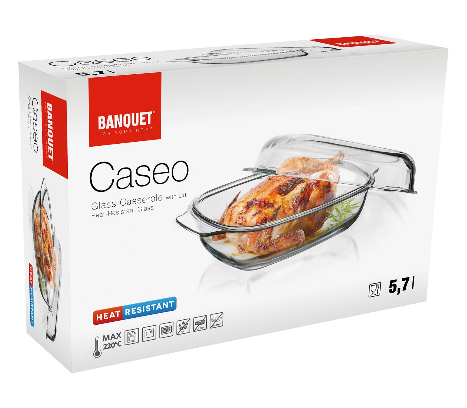 Praktičen steklen pekač s pokrovom CASEO ponuja skupno prostornino 5,7 l (3,7 l posoda + 2 l pokrov) za udobno pečenje in gratiniranje. Izdelan je iz odpornega ognjevarnega stekla s temperaturnim razponom -25 do +220 °C, idealen za meso, zelenjavo, pite in testenine. Dolg življenjski cikel, higienska neoporečnost in enostavno vzdrževanje vključno s pomivanjem v pomivalnem stroju zagotavljajo odlično uporabniško izkušnjo.
