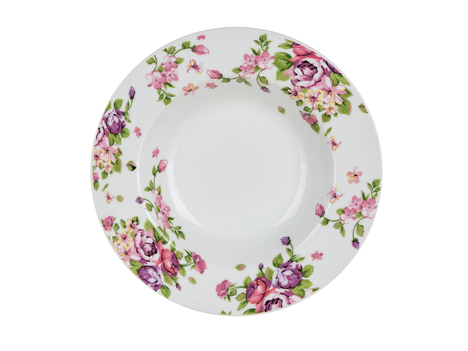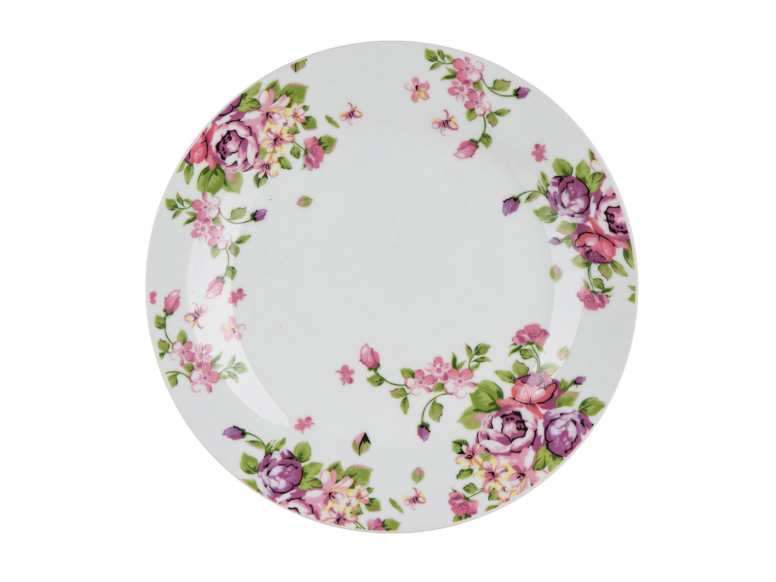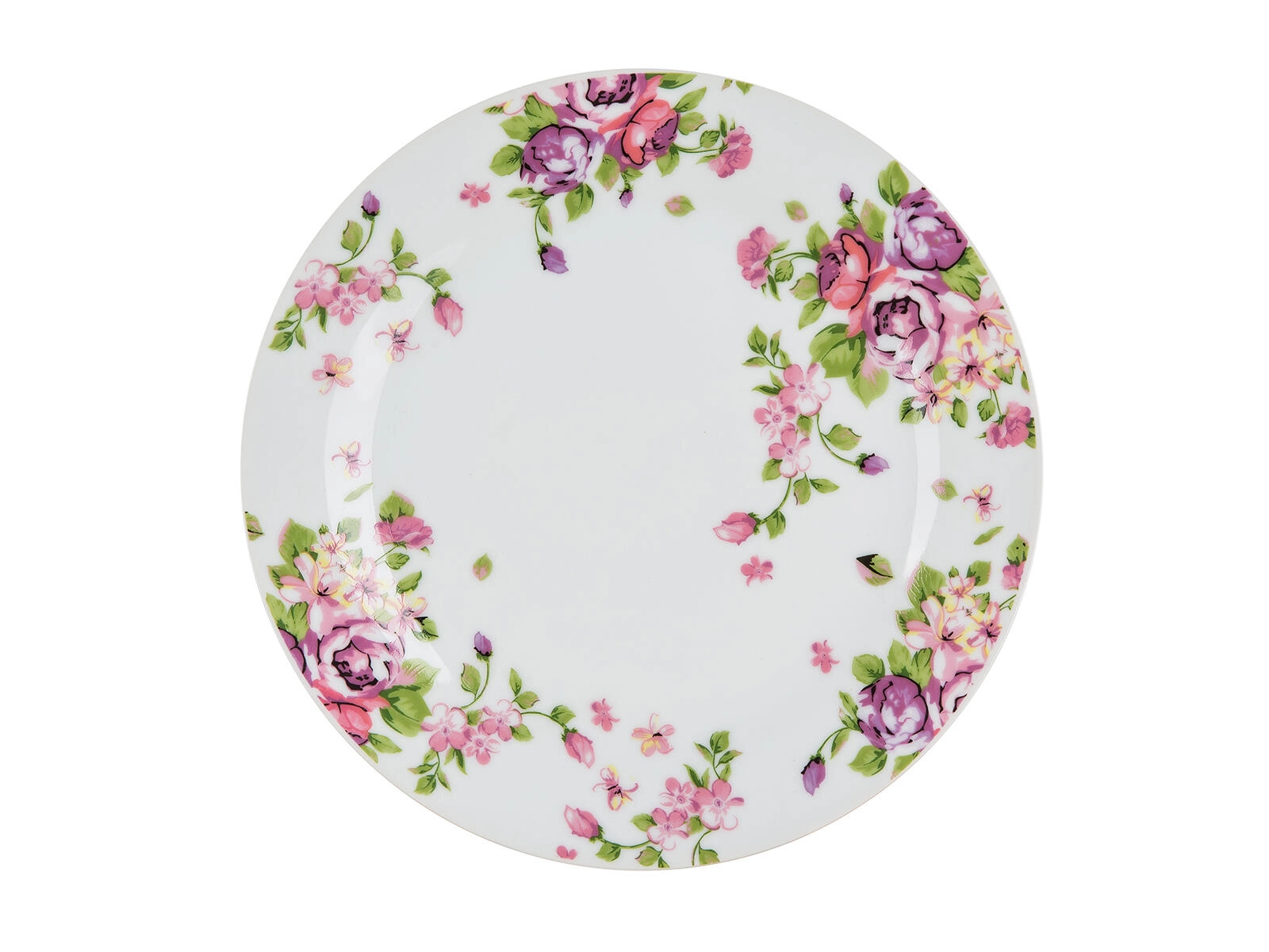 Diskreten rožnato-zelen motiv doda pogrinjku svežino in eleganco ter poveže videz vseh kosov posode.