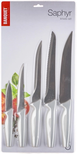 Set nožev SAPHYR je idealna izbira za domače kuharje in navdušence, ki želijo imeti pri roki vsestranska orodja za rezanje, porcijanje in izkoščičevanje. Kakovostna jeklena rezila zagotavljajo visoko ostrino in stabilnost reza, medtem ko sivi ročaji nudijo varen in udoben oprijem.
