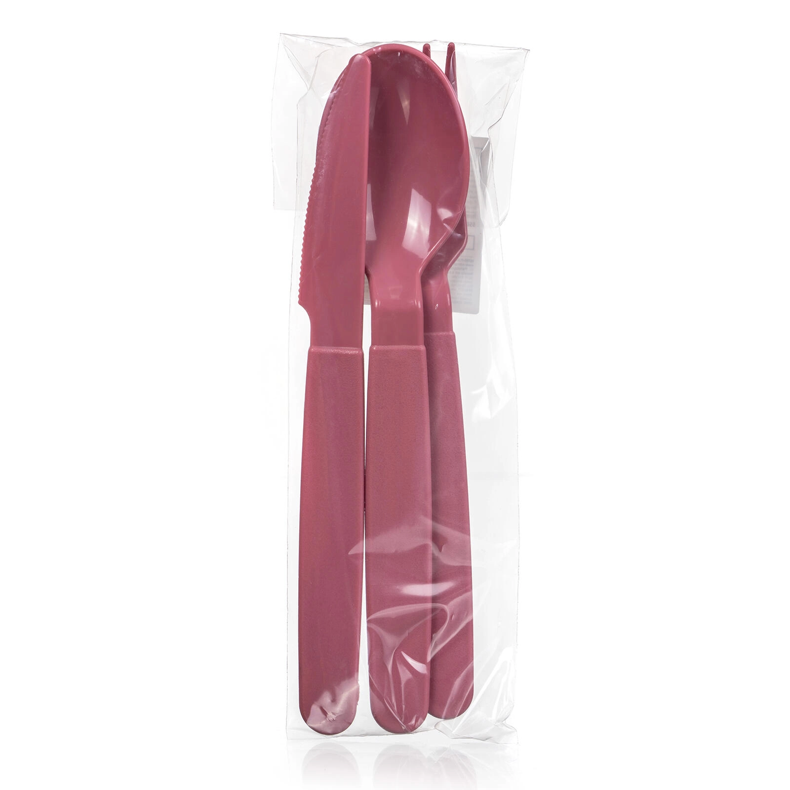 Slogovit komplet jedilnega pribora iz trpežne plastike v temno rožnati barvi je idealen za vsakodnevno uporabo, piknike in kampiranje. Vsebuje vilico, nož in žlico z udobnim oprijemom ter lahko, enostavno pralno izvedbo. Popolna izbira za vrtne zabave, praznovanja in družinske izlete.