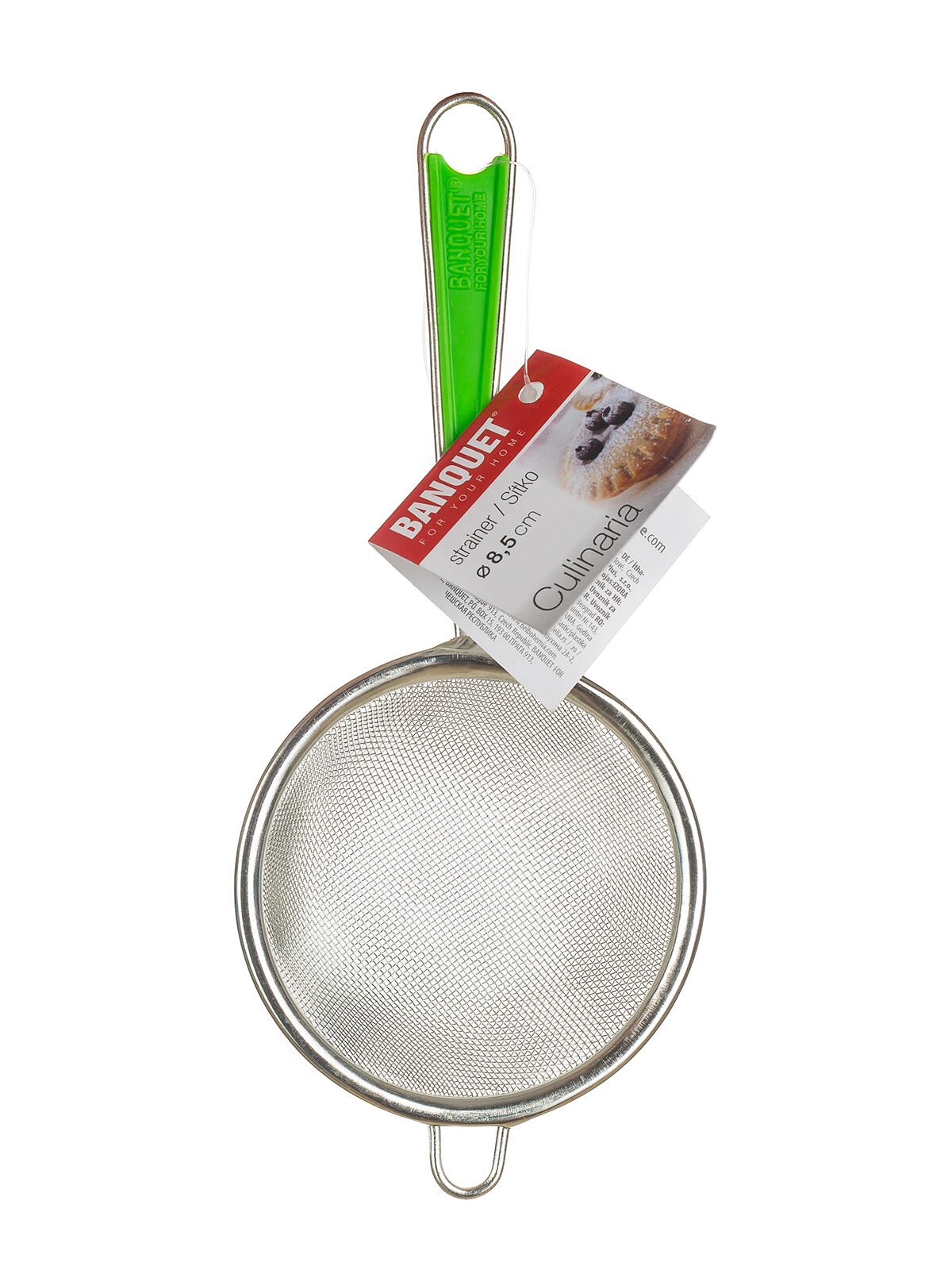 Praktično kuhinjsko cedilo CULINARIA s premerom 8,5 cm za vsakodnevno cejenje tekočin in napitkov. Zahvaljujoč fini mrežici 1 × 1 mm zadrži tudi drobne nečistoče, pocinkan kovinski material zagotavlja odpornost, plastični vložek ABS v ročaju pa udoben in varen oprijem. Stilska zelena izvedba se poda v vsako kuhinjo.
