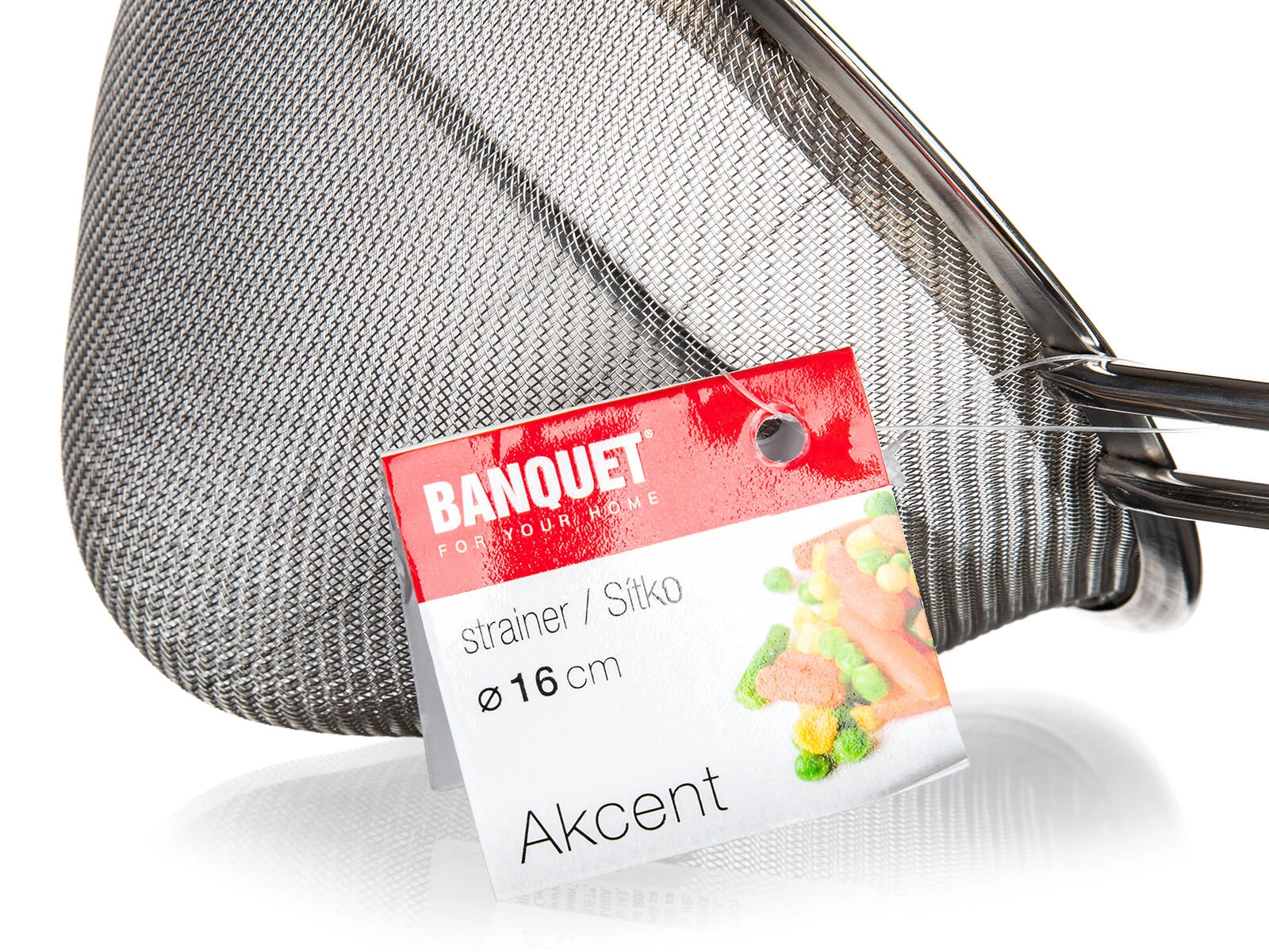 Praktično nerjavno konično cedilo AKCENT s premerom 16 cm je idealno za cejenje tekočin, presajanje moke in fino precedanje omak. Zahvaljujoč fini žični mrežici zadrži tudi drobne nečistoče, lahkotni ročaj z ušescem pa omogoča udobno uporabo in enostavno obešanje.