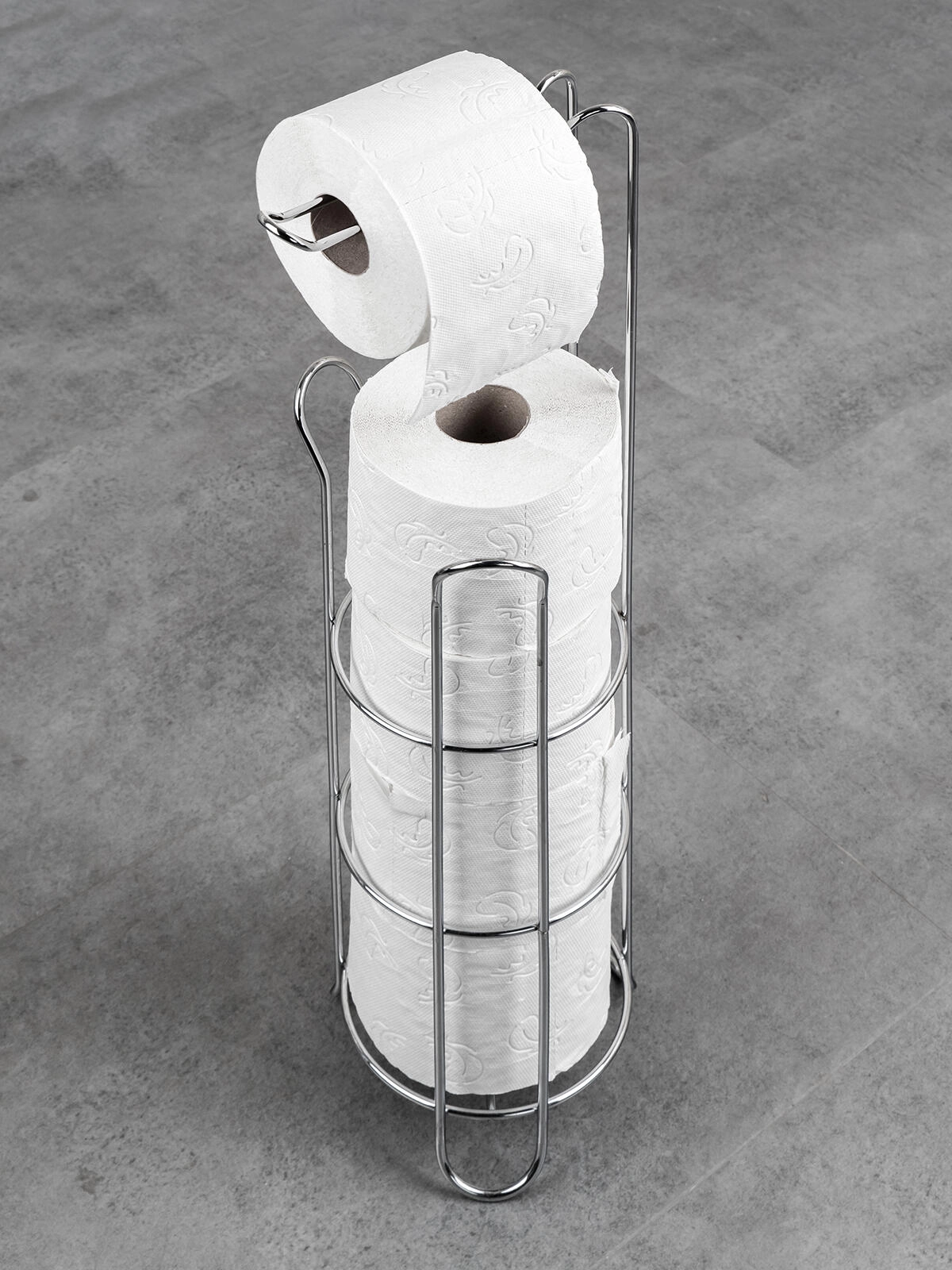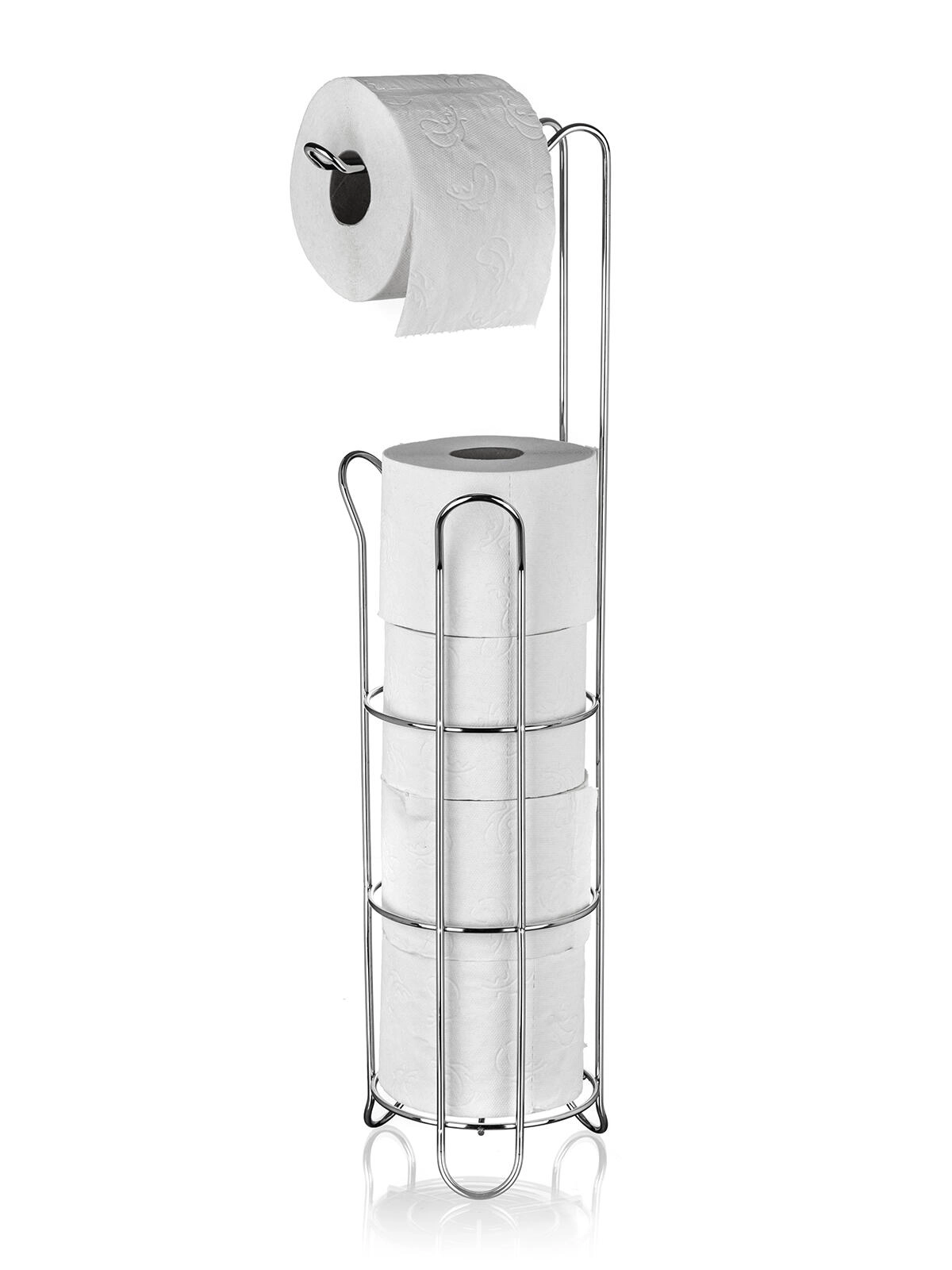 Ohranite svojo kopalnico urejeno in stilsko. To prostostoječe držalo za toaletni papir iz kakovostnega kroma nudi prostor za več nadomestnih rolic ter udobno odvijanje ene rolice na vrhu. Zaradi vitkega profila se prilega tudi manjšim kopalnicam in WC-jem.