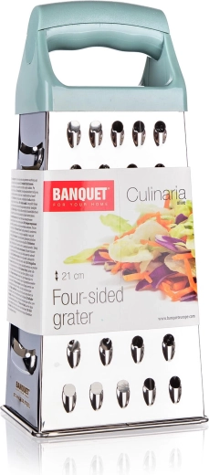 Praktično štiristransko strgalo v obliki črke A za vsestransko ribanje. Zaradi nerjavnega jekla, stabilne konstrukcije in udobnega plastičnega ročaja v olivni barvi je idealno za vsakodnevno uporabo v kuhinji.
