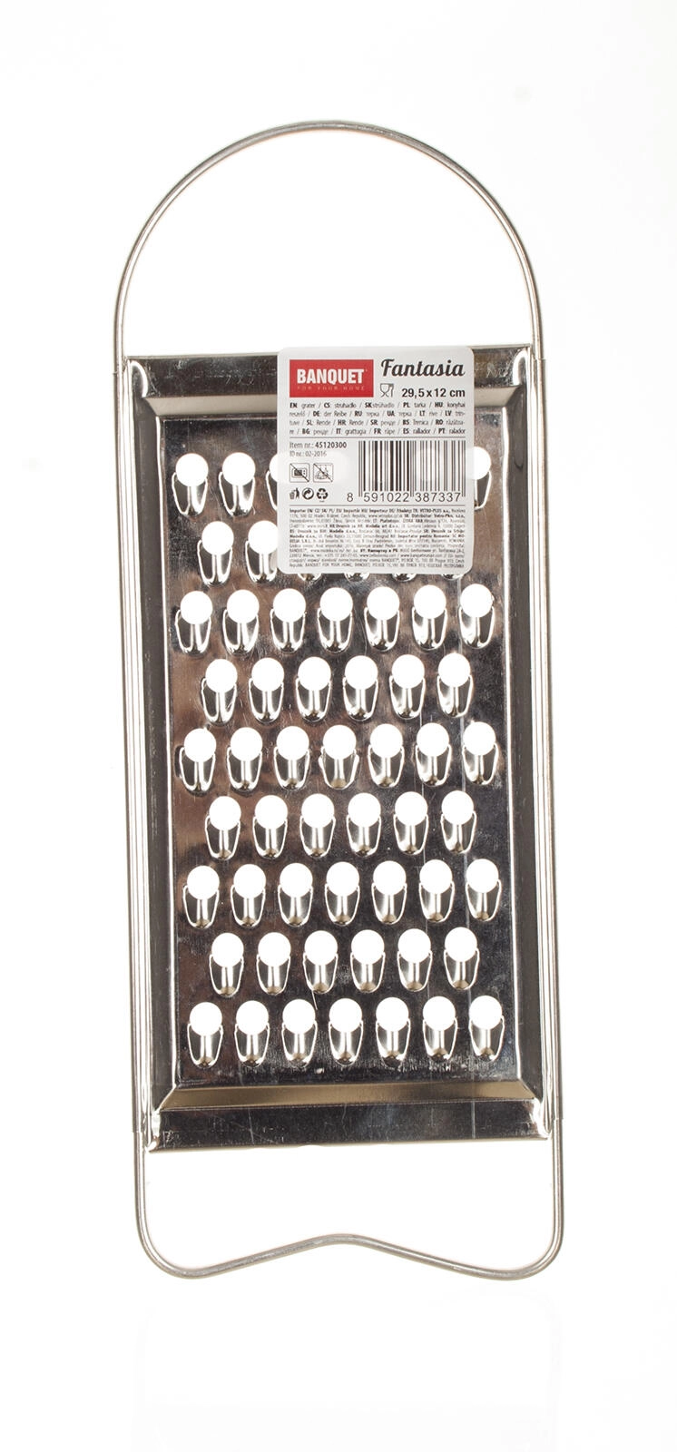 Odkrijte zanesljivo plosko strgalo za zelenjavo Fantasia z merami 29,5 × 12 cm, ki je odlično za vsakodnevno pripravo solat, prilog in domačih jedi. Zahvaljujoč pocinkanemu površinskemu premazu je odporno proti koroziji in enostavno za čiščenje, medtem ko čvrsta pločevinasta konstrukcija zagotavlja stabilnost pri strganju.