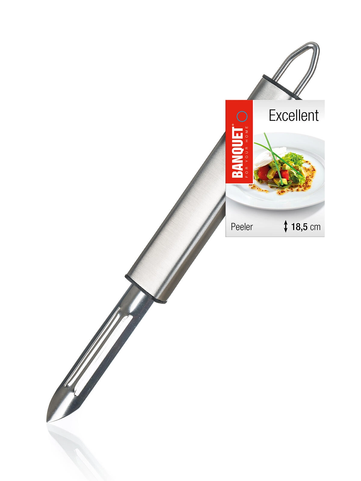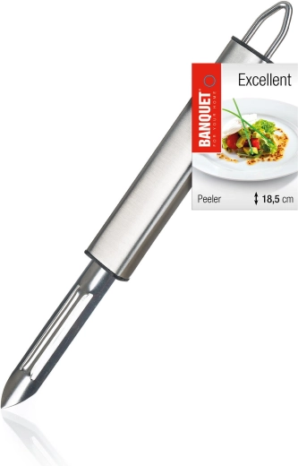 Olajšajte si pripravo jedi z lupilcem EXCELLENT iz nerjavečega jekla. Zahvaljujoč ostremu rezilu boste hitro in udobno olupili krompir, korenje, jabolka in drugo sadje ter zelenjavo. Trpežni materiali zagotavljajo dolgo življenjsko dobo in enostavno vzdrževanje.