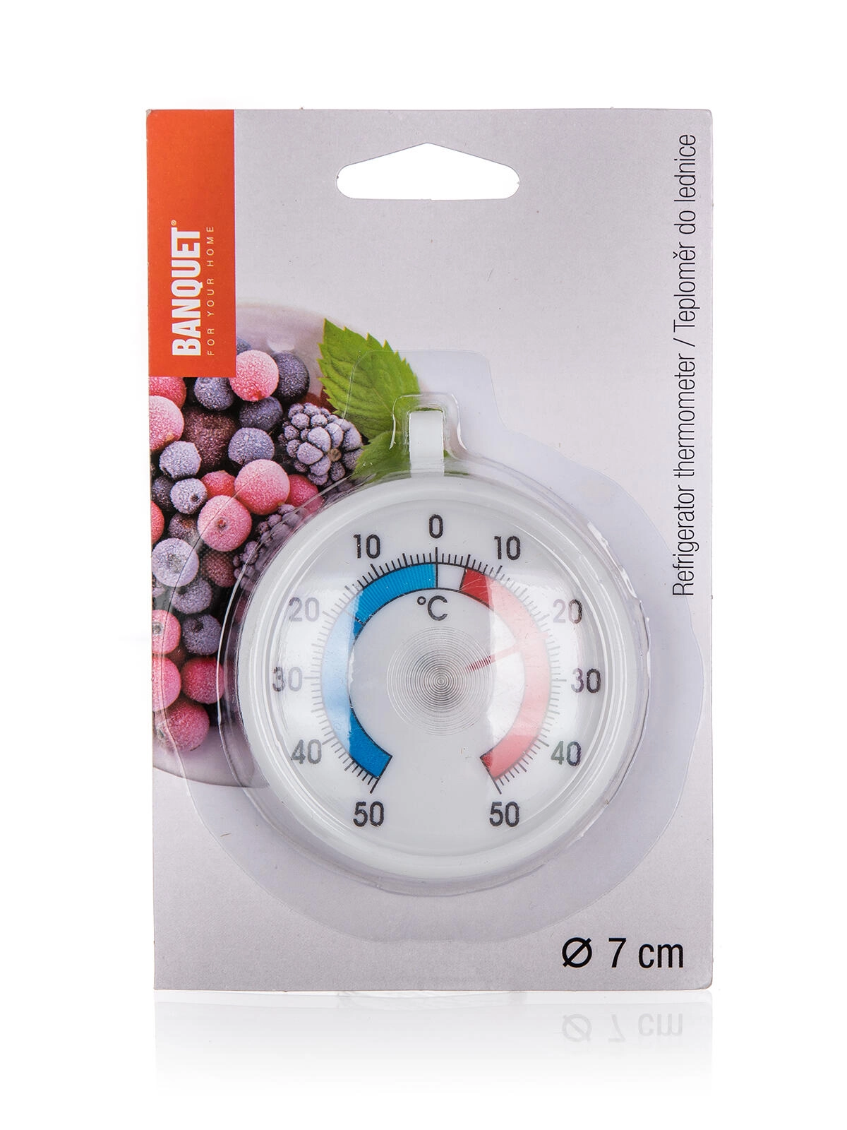 Praktičen okrogel termometer za hladilnik in zamrzovalnik s premerom 7 cm ponuja jasno berljivo lestvico v območju -50 do +50 °C. Pomaga vam ohranjati idealno temperaturo za svežino živil, zmanjšati tveganje pokvarljivosti in varčevati z energijo s pravilno nastavitvijo aparata.
