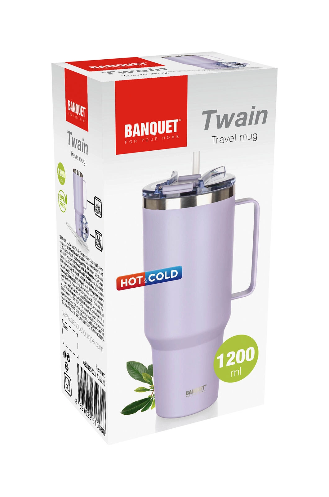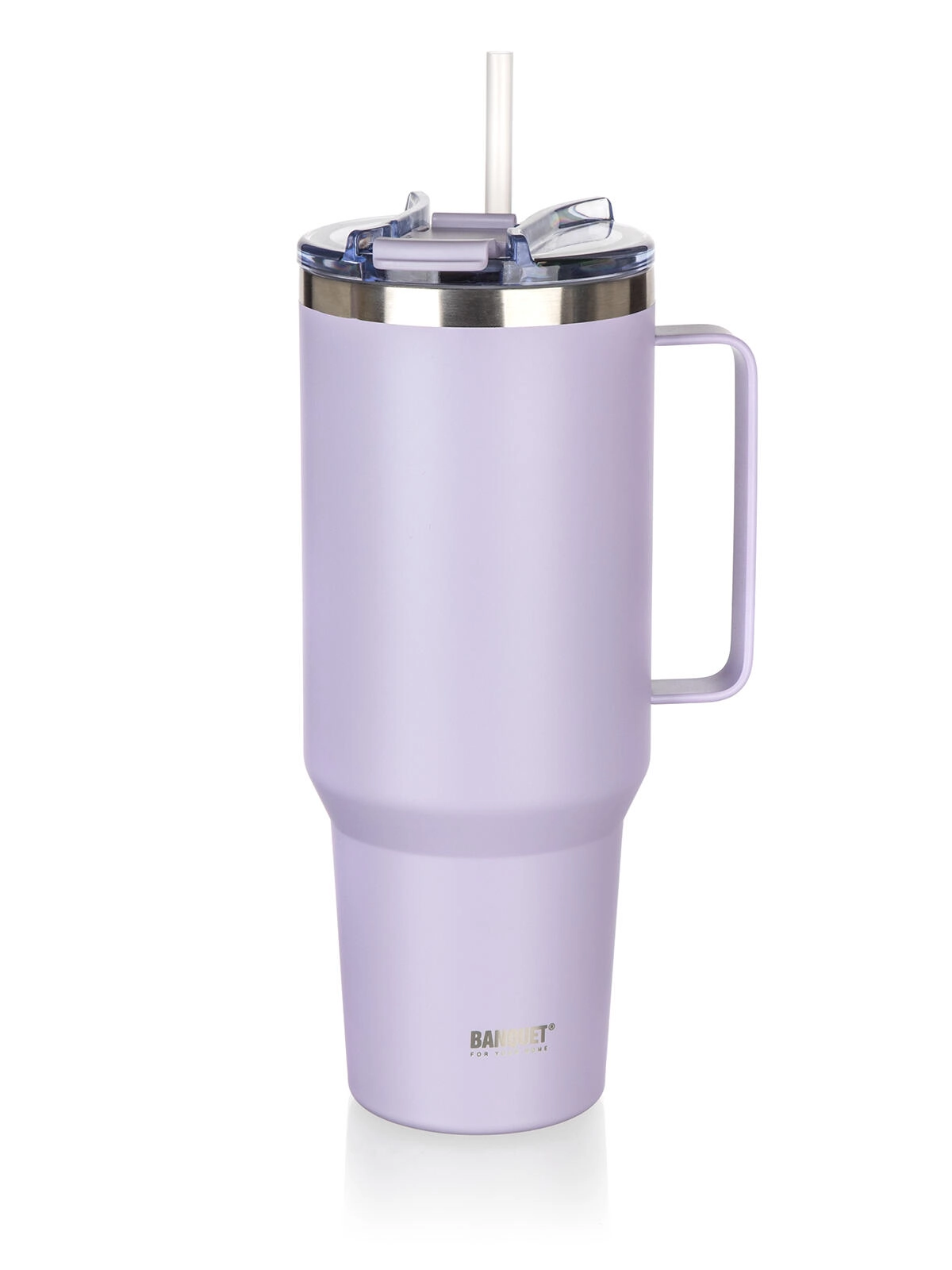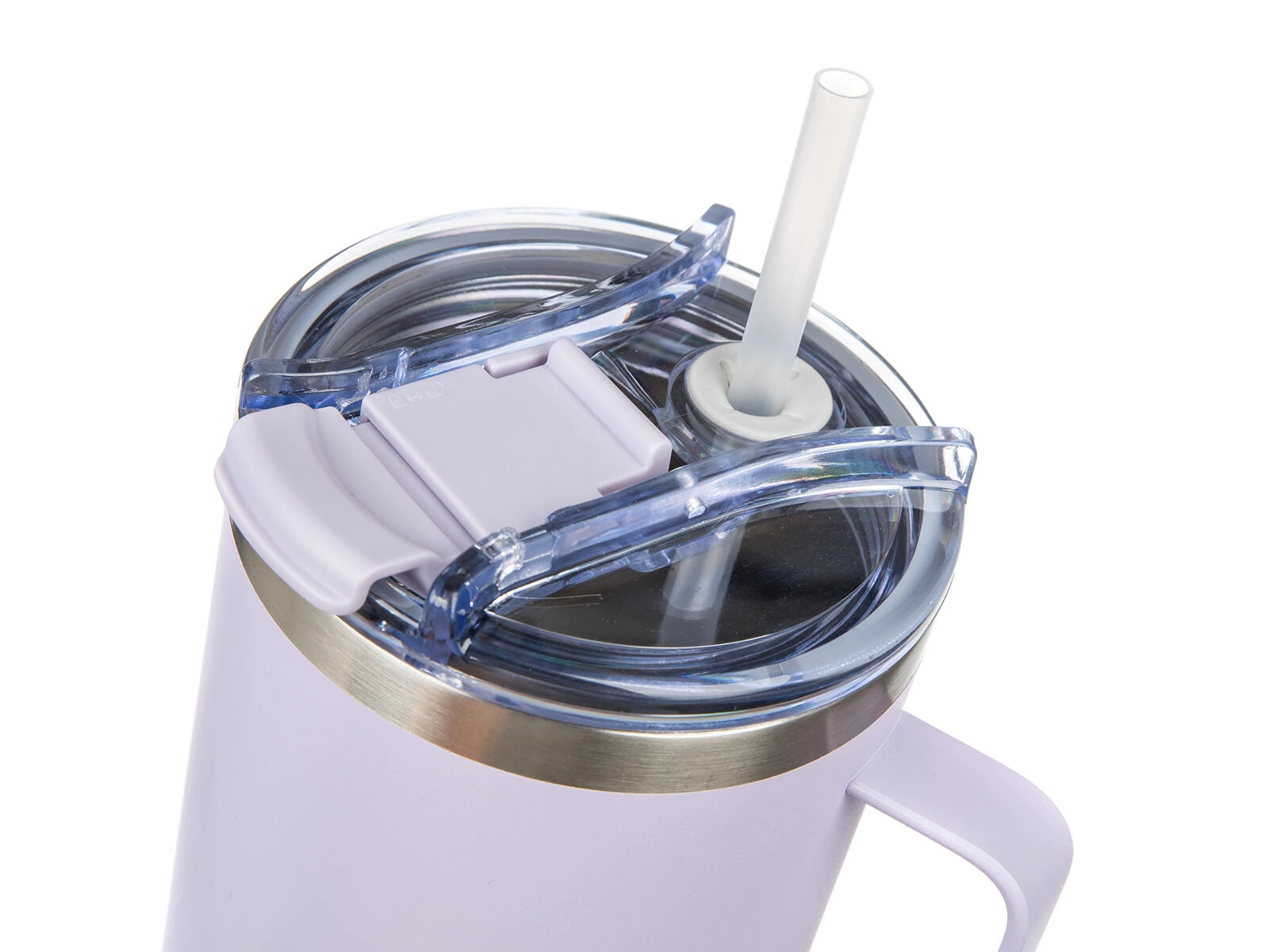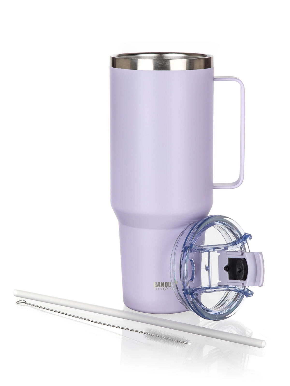 Prosojen pokrov iz odporne plastike ponuja dva načina pitja – preko slamice ali neposredno iz ustnika. Del pakiranja sta PP slamica in čistilna ščetka za enostavno vzdrževanje. Robustni ročaj zagotavlja udobno nošenje doma, v pisarni in na poti. Proti neželenemu polivanju pomaga zapiralna odprtina, vendar pokrov ni 100% neprepusten – priporočamo prenašanje v navpičnem položaju.