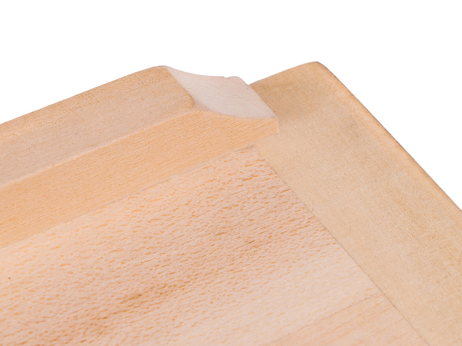 Naravna breza z gladko površino je higienska, prijazna do ostrine nožev in odporna pri redni uporabi.