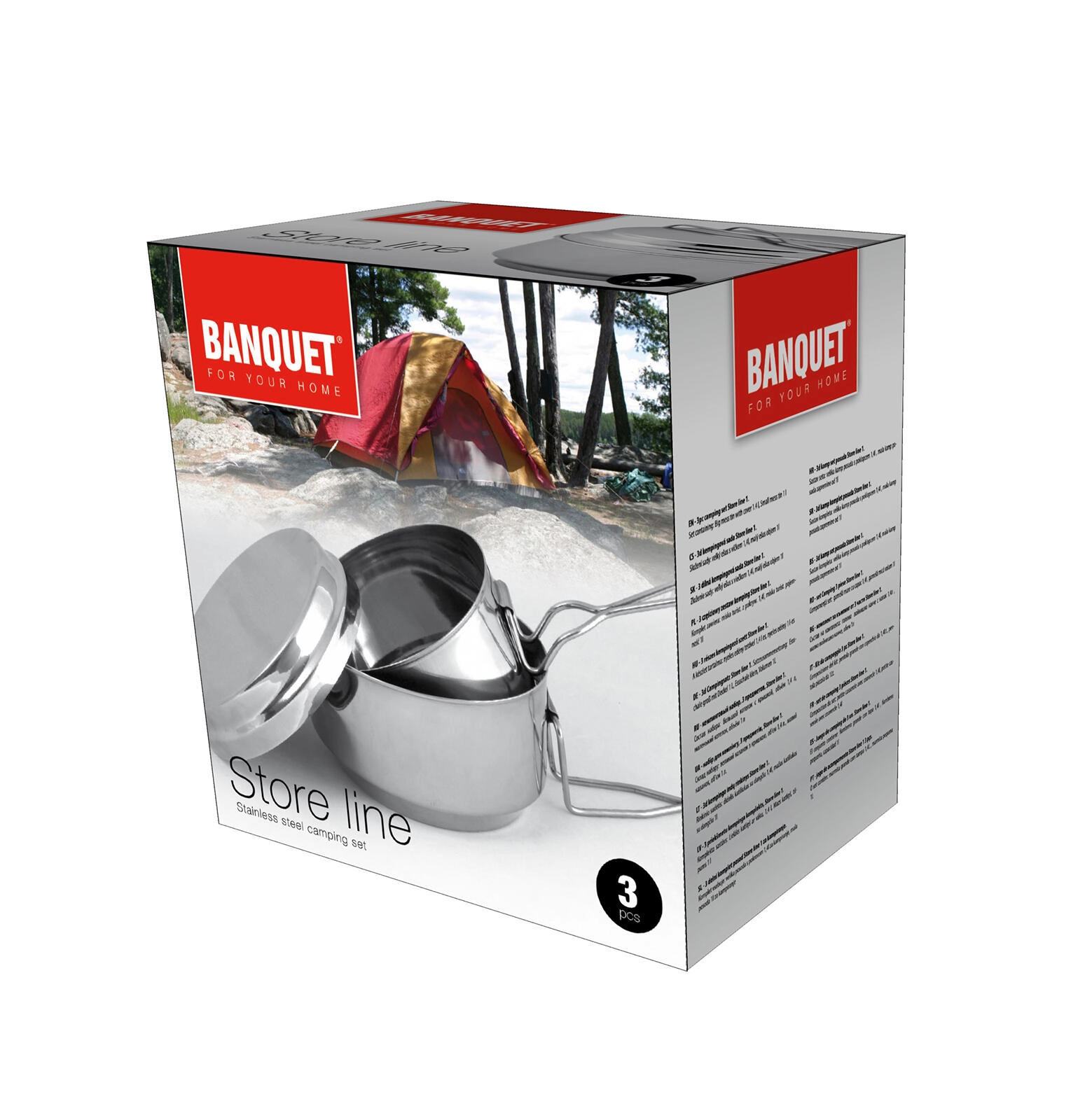 Odkrijte zanesljiv nerjavni set posod za kampiranje, pohodništvo in potovanja. Dve posodi s premeri 15 cm (1,4 l) in 13 cm (1 l) dopolnjuje pokrov, ki izboljša učinkovitost segrevanja in ščiti hrano. Nerjavno jeklo 14/1 je preprosto za vzdrževanje, odporno proti koroziji in idealno za večkratno uporabo na prostem.