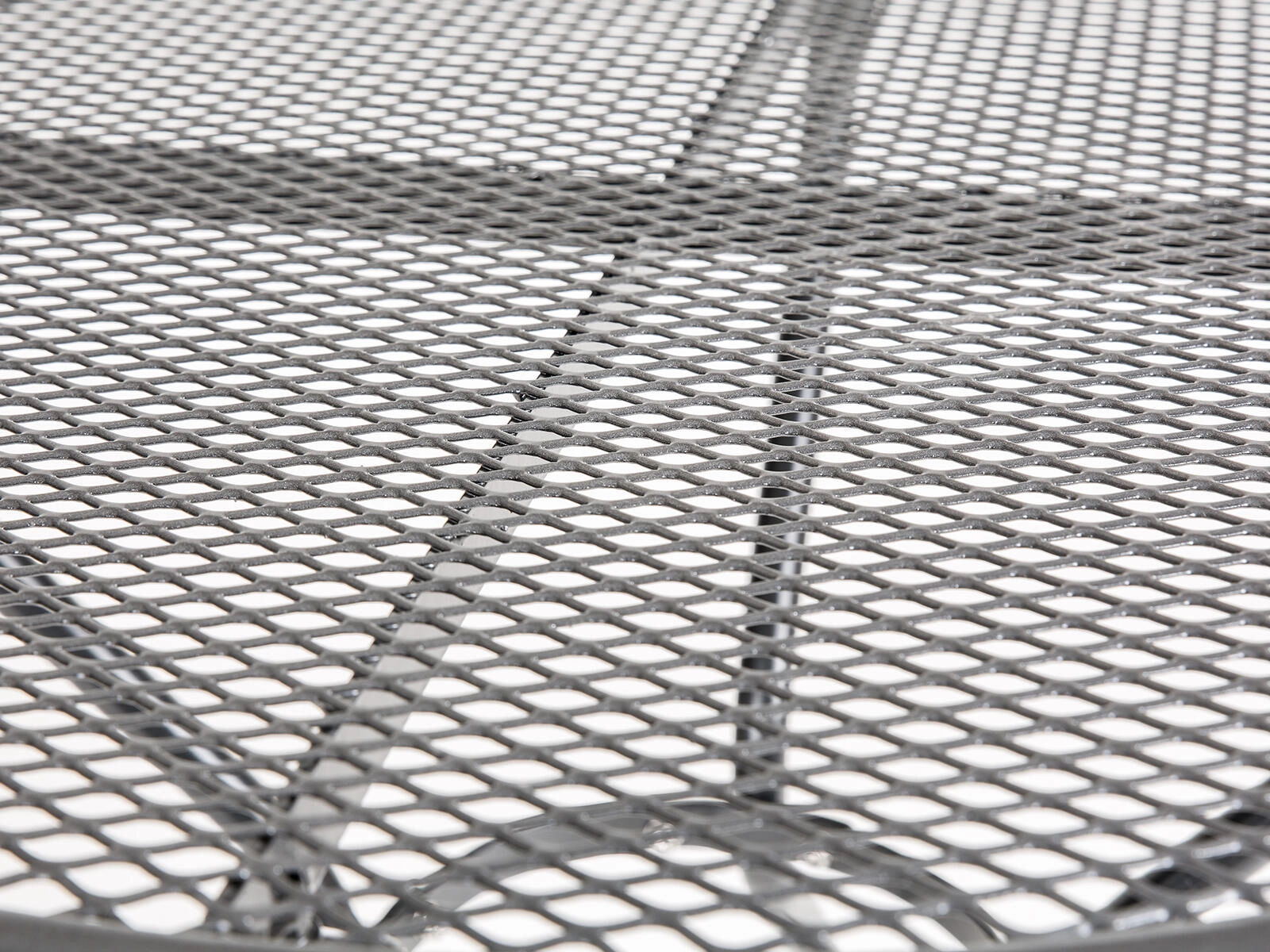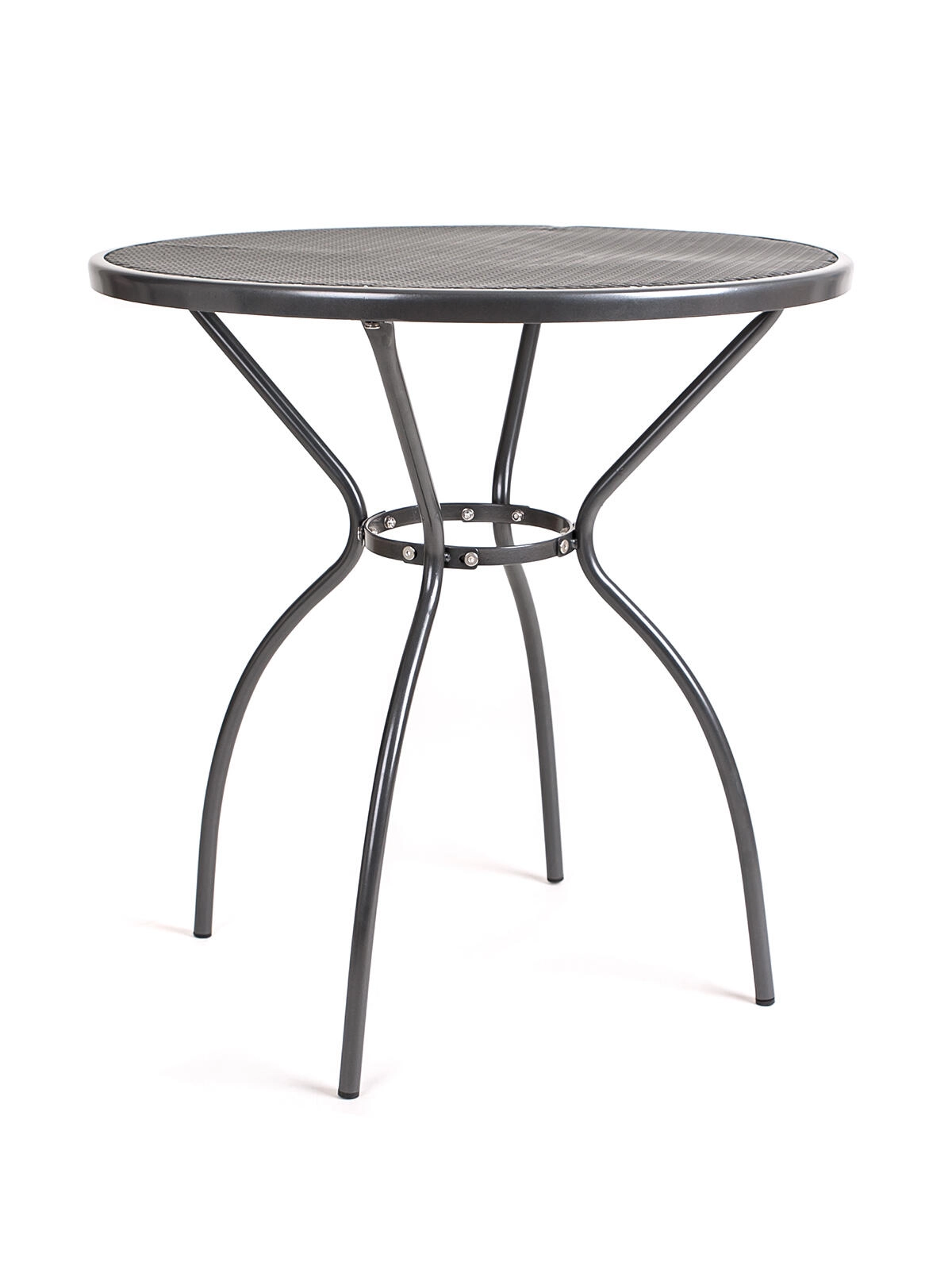 Perforirana (mrežasta) plošča omogoča hiter odtok vode in enostavno čiščenje, medtem ko močne cevne noge s spodnjimi kapicami pomagajo ščititi podlage in povečujejo stabilnost. Miza je primerna kot bistro miza, odlagalna miza ali manjša jedilna miza za zunanje sedenje.