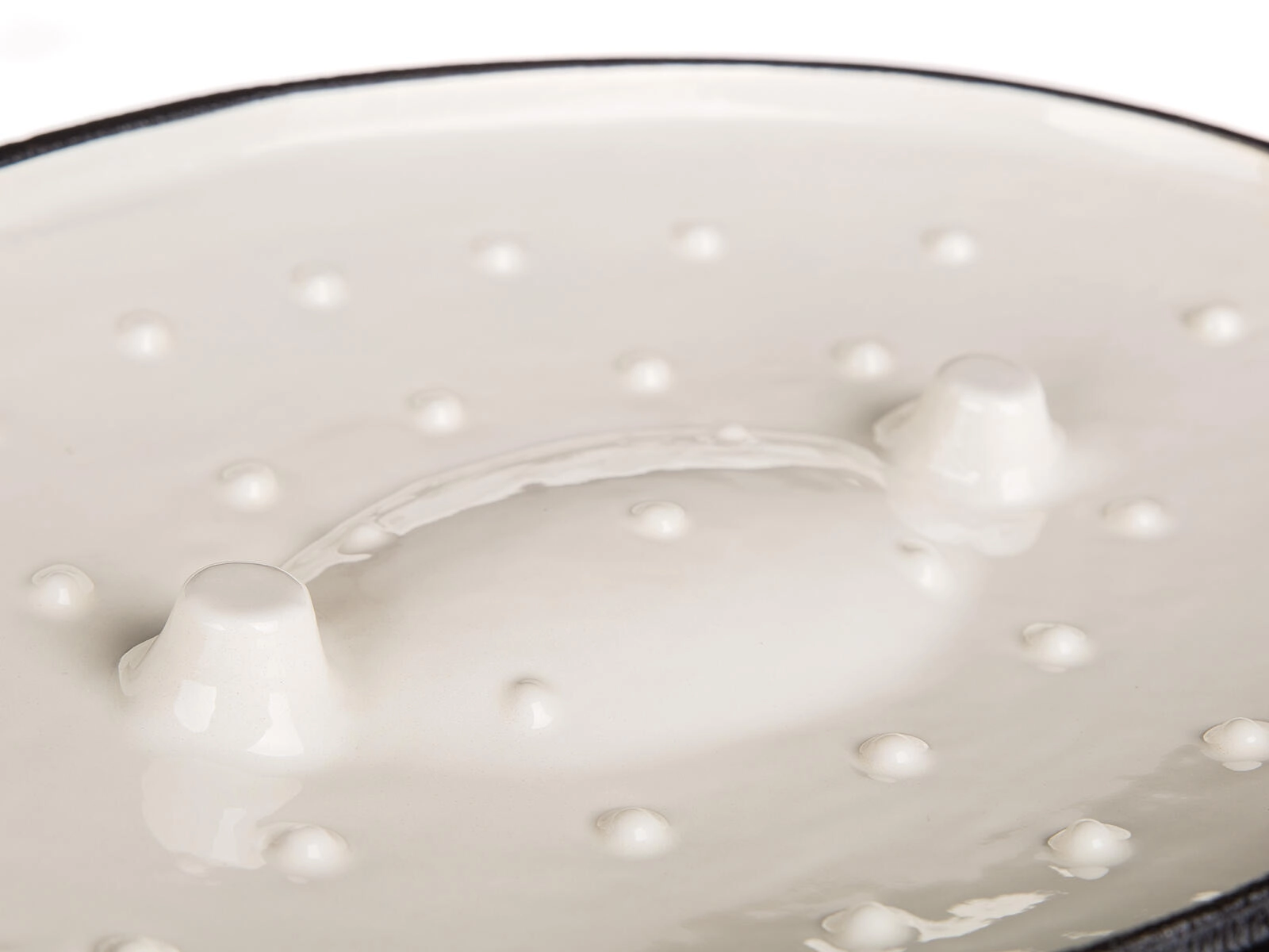Gladek notranji emajl je odporen proti praskam in pokanju, zmanjšuje prijemanje hrane in poenostavlja vzdrževanje po kuhanju.