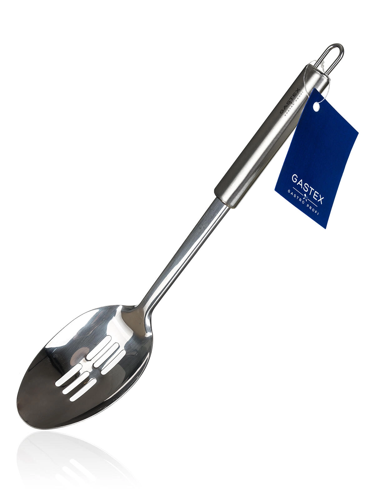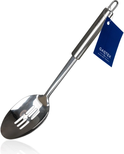 Zahvaljujoč praktičnemu očesu lahko žlico zlahka obesite in jo imate vedno pri roki. Gladka površina iz nerjavečega jekla se preprosto čisti in je primerna za pomivalni stroj. Linija kuhinjskega pripomočkov GASTEX izpolnjuje zahteve profesionalcev, hkrati pa je odlična izbira tudi za gospodinjstva.