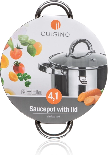 Nerjavno jeklen lonec CUISINO s prostornino 4,1 l je odlična izbira za juhe, omake in priloge. Zahvaljujoč steklenemu pokrovu imate nad kuhanjem vedno pregled, bleščeča površina pa posodi doda eleganten videz. Notranja merilna lestvica olajša natančno odmerjanje tekočin.