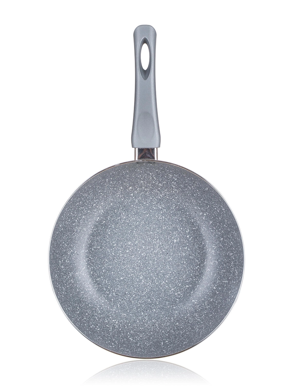 Wok ponev CUISINO Granite Grey prinaša udobnejše in bolj zdravo kuhanje zahvaljujoč dvoslojnemu nelepljivemu premazu, ki zmanjšuje potrebo po olju in preprečuje prijemanje. Robusten aluminijast trup zagotavlja hitro segrevanje in stabilno temperaturo po celotni površini.