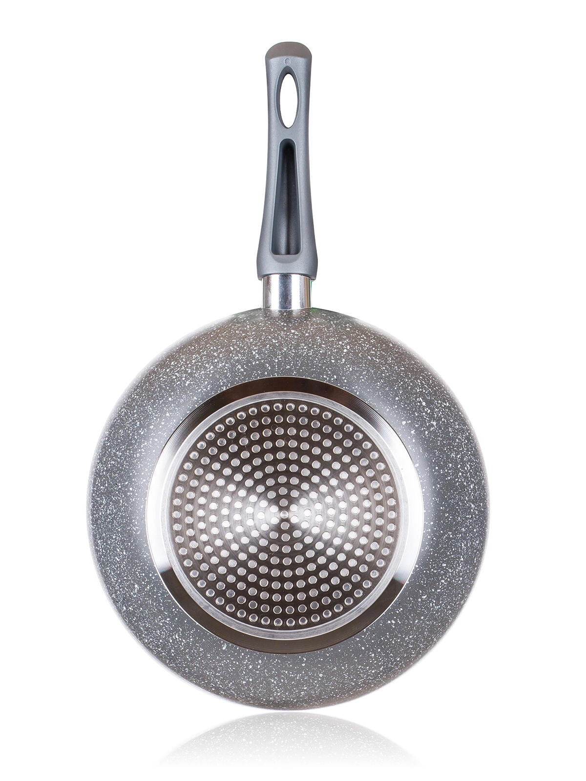 Praktičen ergonomski ročaj s soft‑touch obdelavo nudi varen in zanesljiv oprijem. Zunanja toplotno odporna prevleka povečuje vzdržljivost in podaljšuje življenjsko dobo ponve. Stilska siva “granite” izvedba se poda vsaki moderni kuhinji.