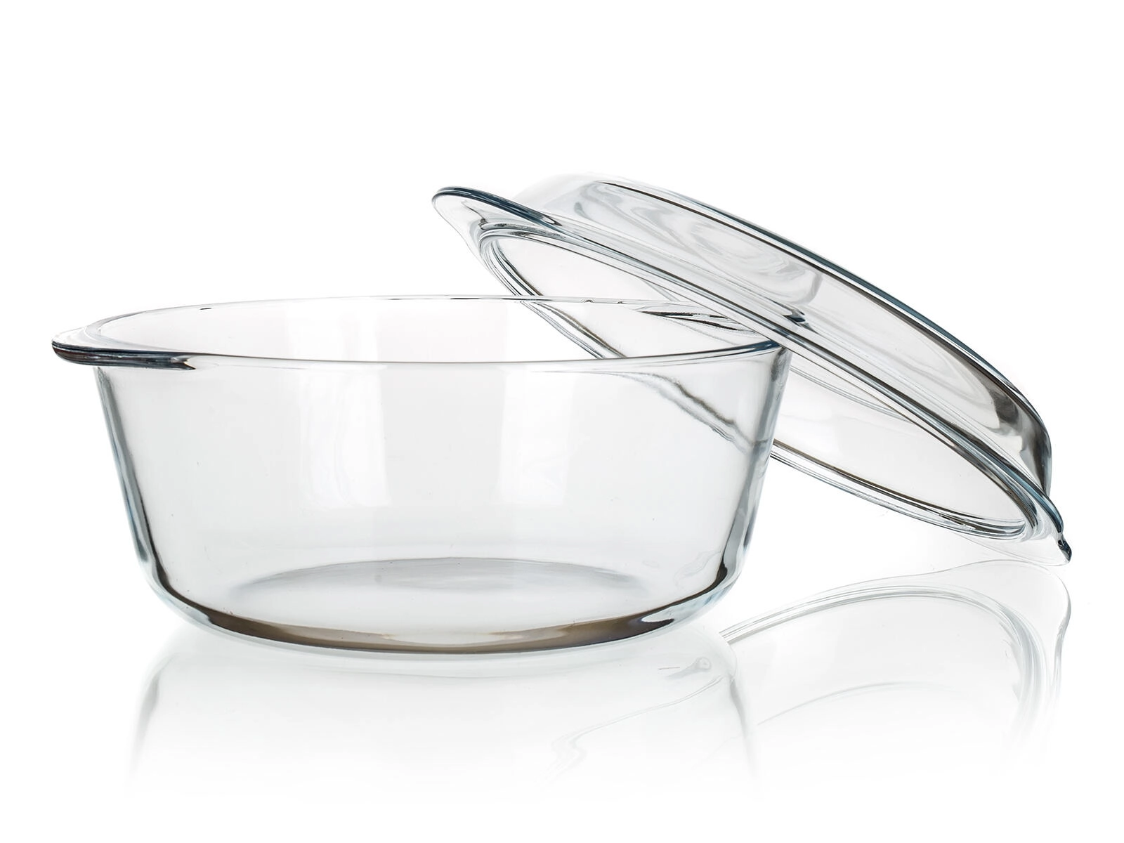 Univerzalen steklen okrogel pekač s pokrovom s skupno prostornino 3,1 l za pečenje, gratiniranje in serviranje. Iz trdega borosilikatnega stekla, odpornega od -40 do 300 °C, z higiensko neoporečnostjo, dolgo življenjsko dobo in preprostim vzdrževanjem v pomivalnem stroju.