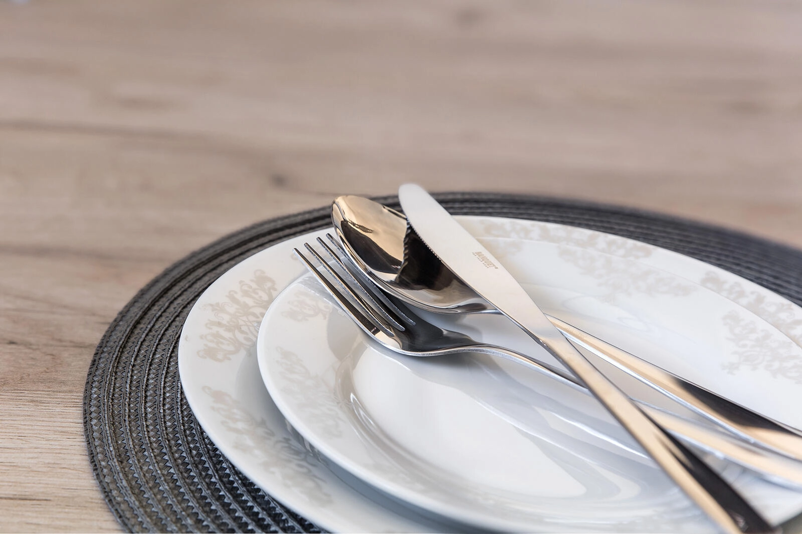 Vnesite v svoje pogrinjke čist in moderen slog z okroglim podstavkom Tondo. Zaradi premera 38 cm zanesljivo zaščiti površino mize pred madeži in praskami, medtem ko se nevtralna siva barva zlahka kombinira z različnim posodjem in dekorjem.