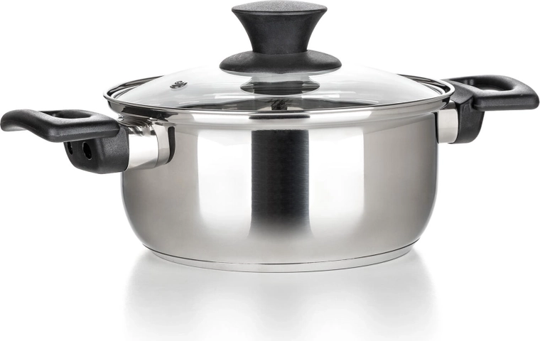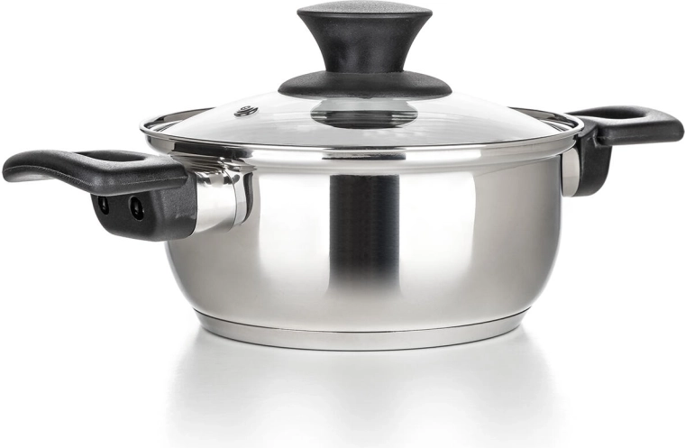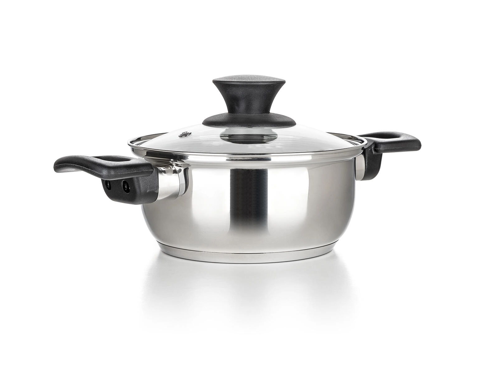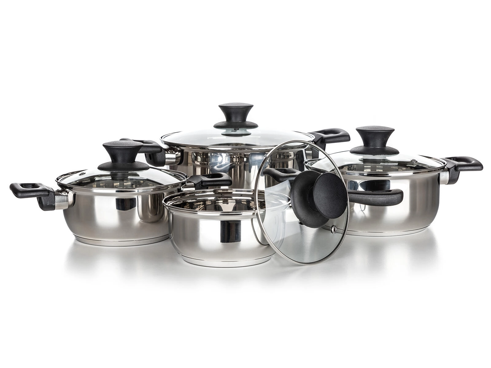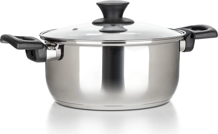 Opre mite svojo kuhinjo s praktičnim in trpežnim kompletom posod iz kakovostnega nerjavečega jekla. Različne velikosti loncev in kozice pokrijejo vse od omak do nasitnih juh. Steklena pokrova z odprtino za izpust pare omogočata pregled nad kuhanjem brez potrebo po dvigovanju.