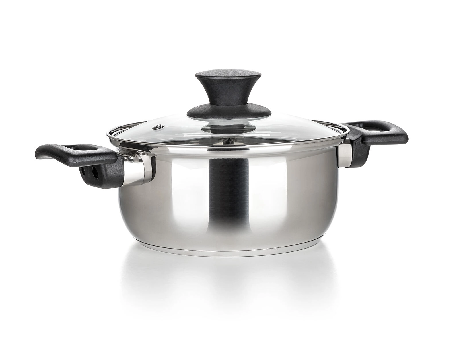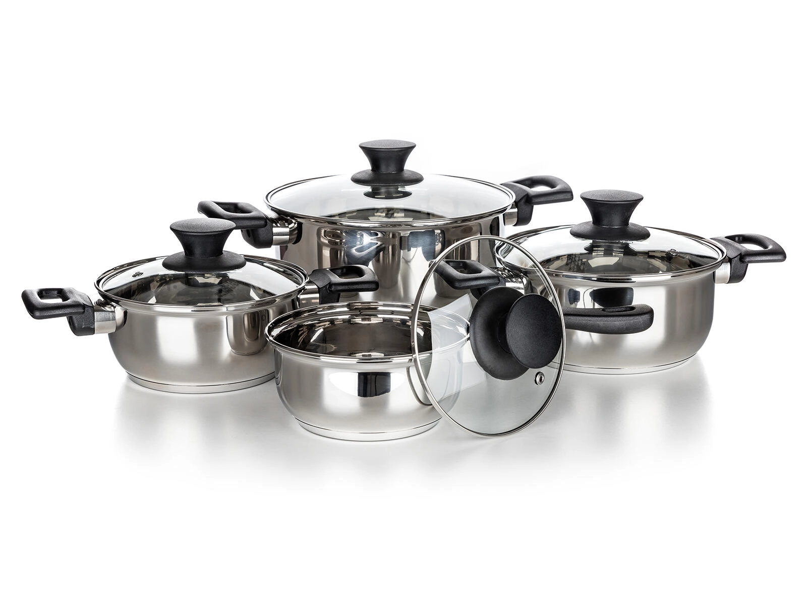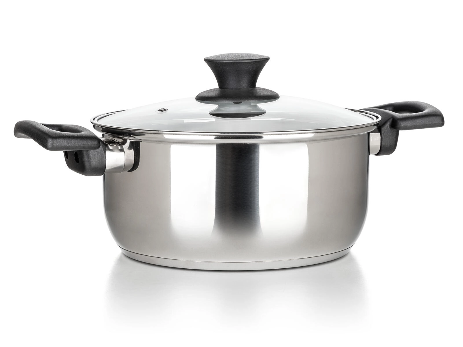 Opre mite svojo kuhinjo s praktičnim in trpežnim kompletom posod iz kakovostnega nerjavečega jekla. Različne velikosti loncev in kozice pokrijejo vse od omak do nasitnih juh. Steklena pokrova z odprtino za izpust pare omogočata pregled nad kuhanjem brez potrebo po dvigovanju.